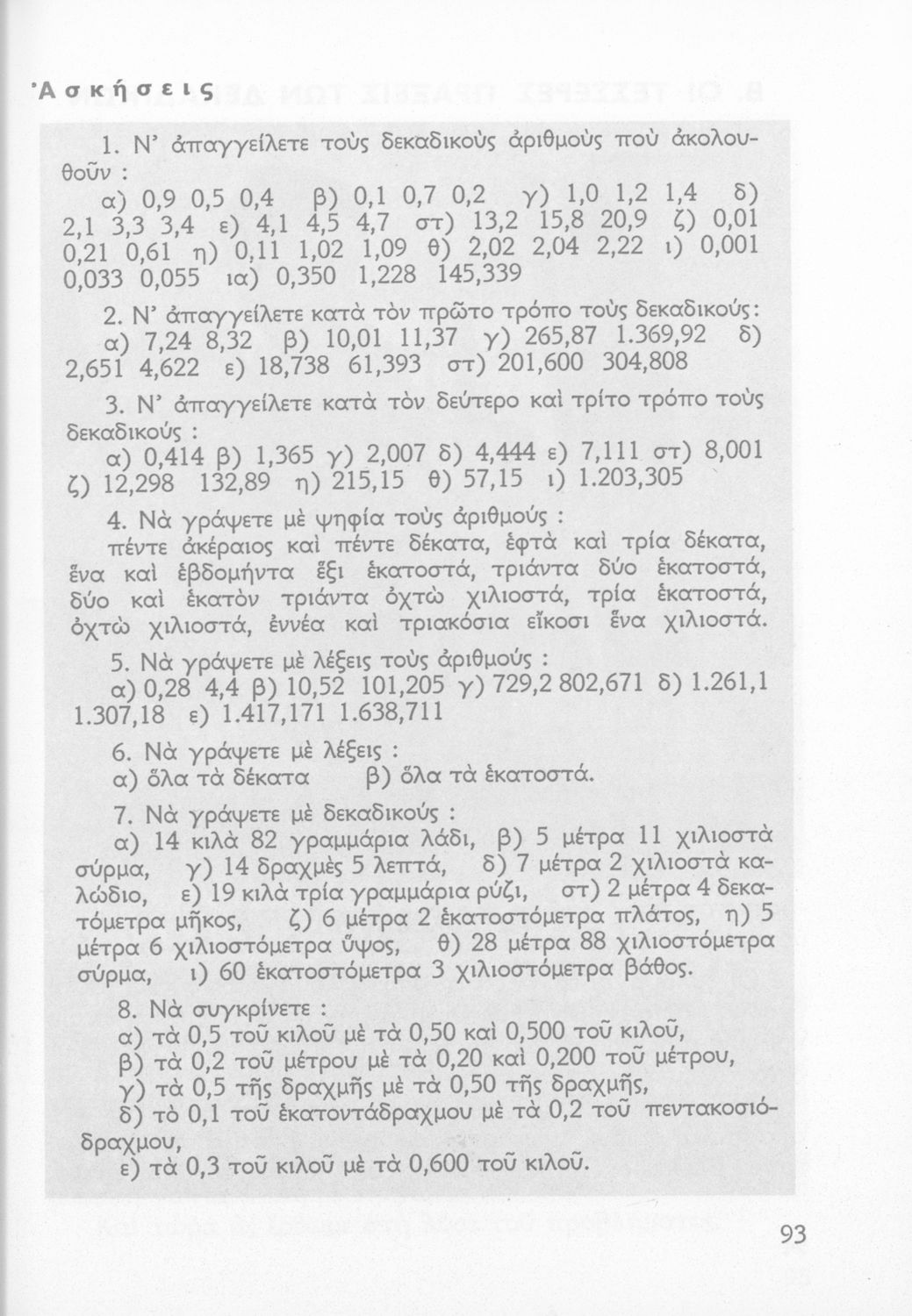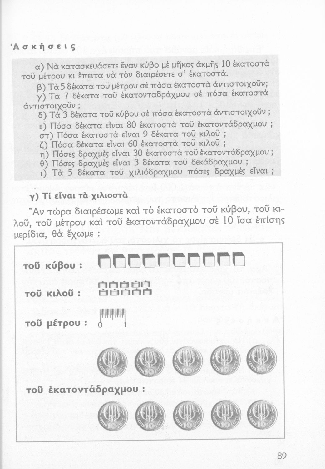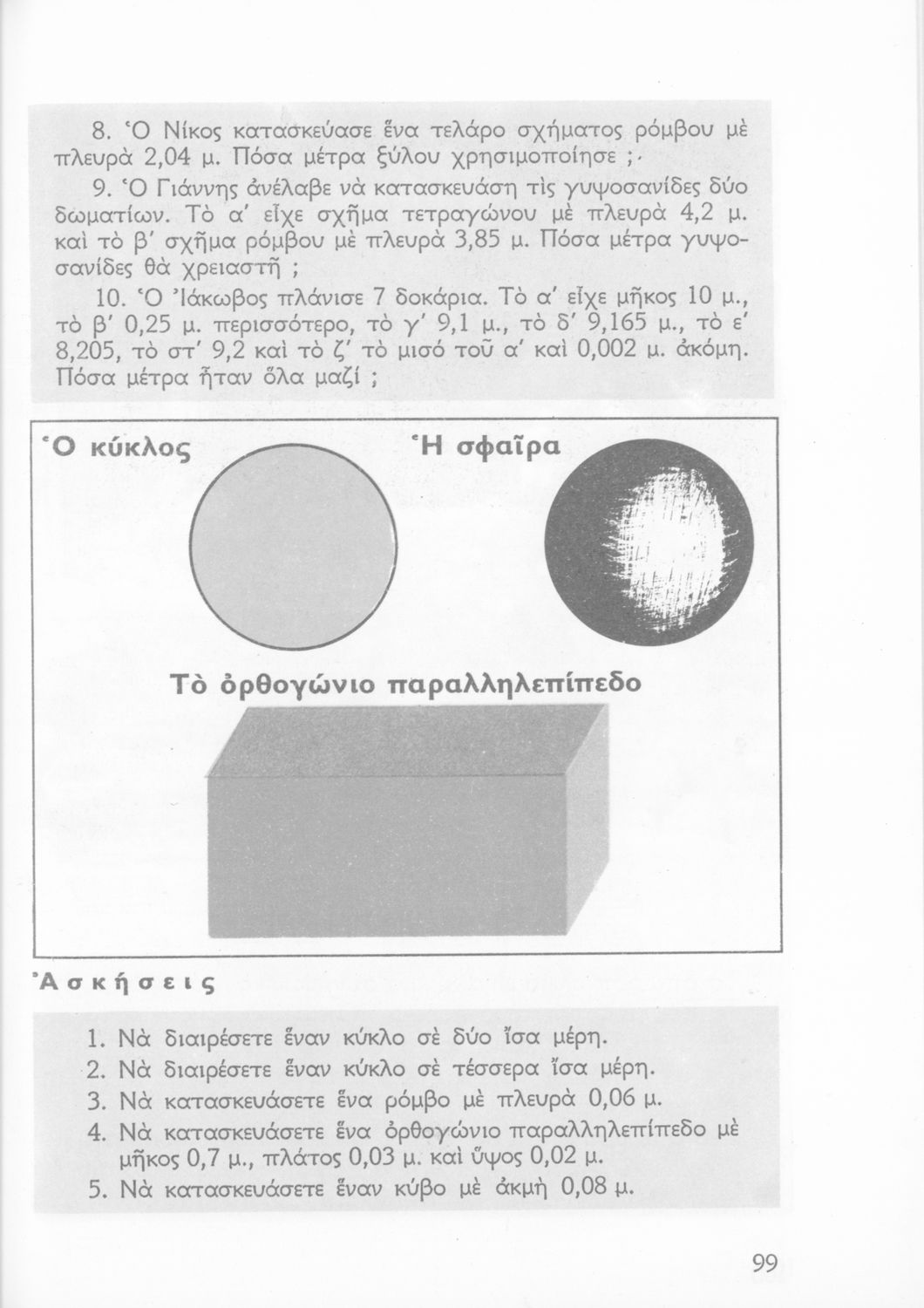 Σχολικό εγχειρίδιο Αριθμητικής Δ΄ Δημοτικού χωρισμένο σε πρακτικά προβλήματα και τις λύσεις τους που περιλαμβάνει και κάποια στοιχεία Γεωμετρίας.