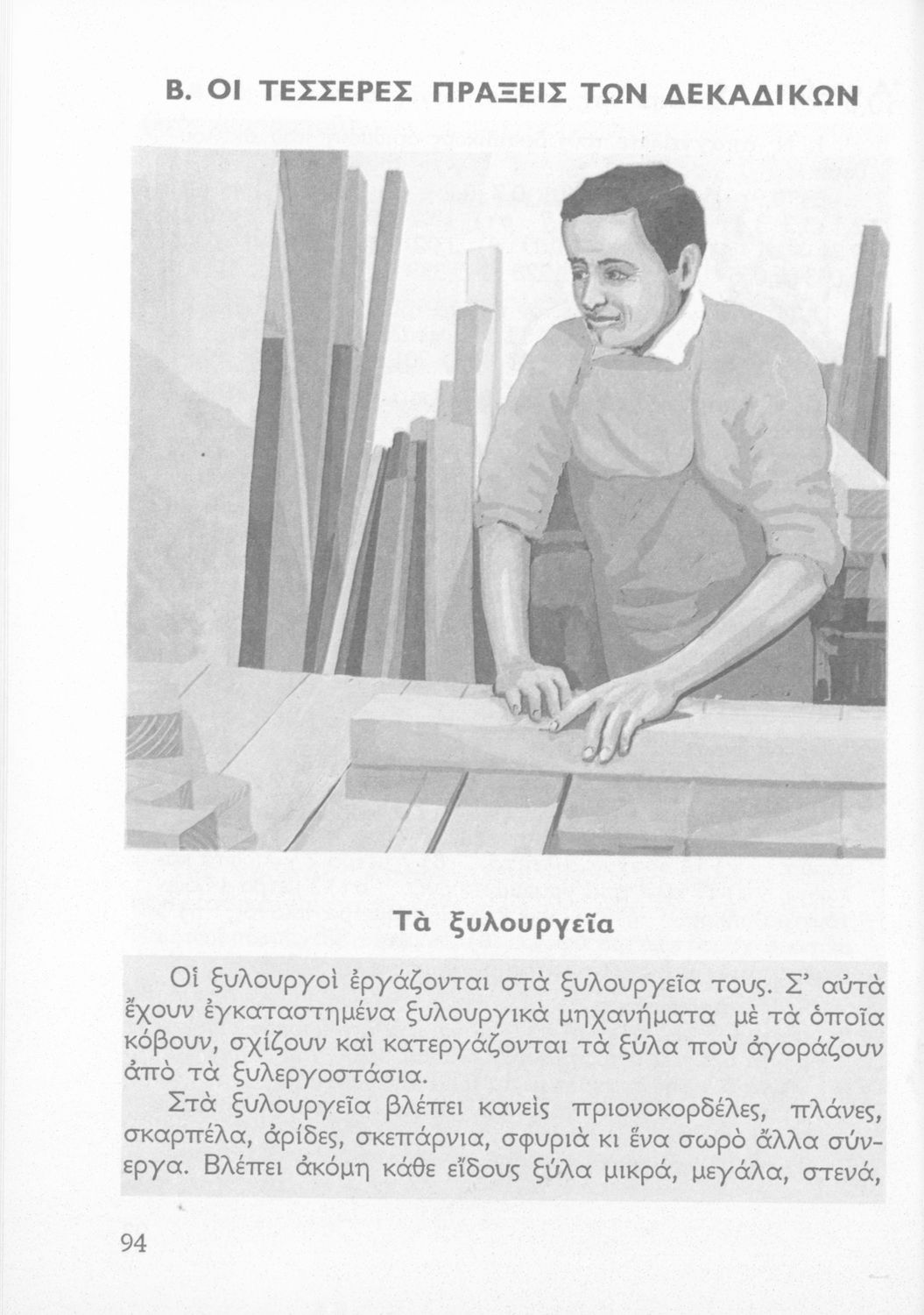 Βαθμίδα εκπαίδευσης: Πρωτοβάθμια Τάξη: Δ' Δημοτικού Μάθημα: Μαθηματικά Γλώσσα: Δημοτική Παρουσίαση περιεχομένου: Σχολικό εγχειρίδιο Αριθμητικής Δ΄ Δημοτικού χωρισμένο σε πρακτικά προβλήματα και τις λύσεις τους που περιλαμβάνει και κάποια στοιχεία Γεωμετρίας. |