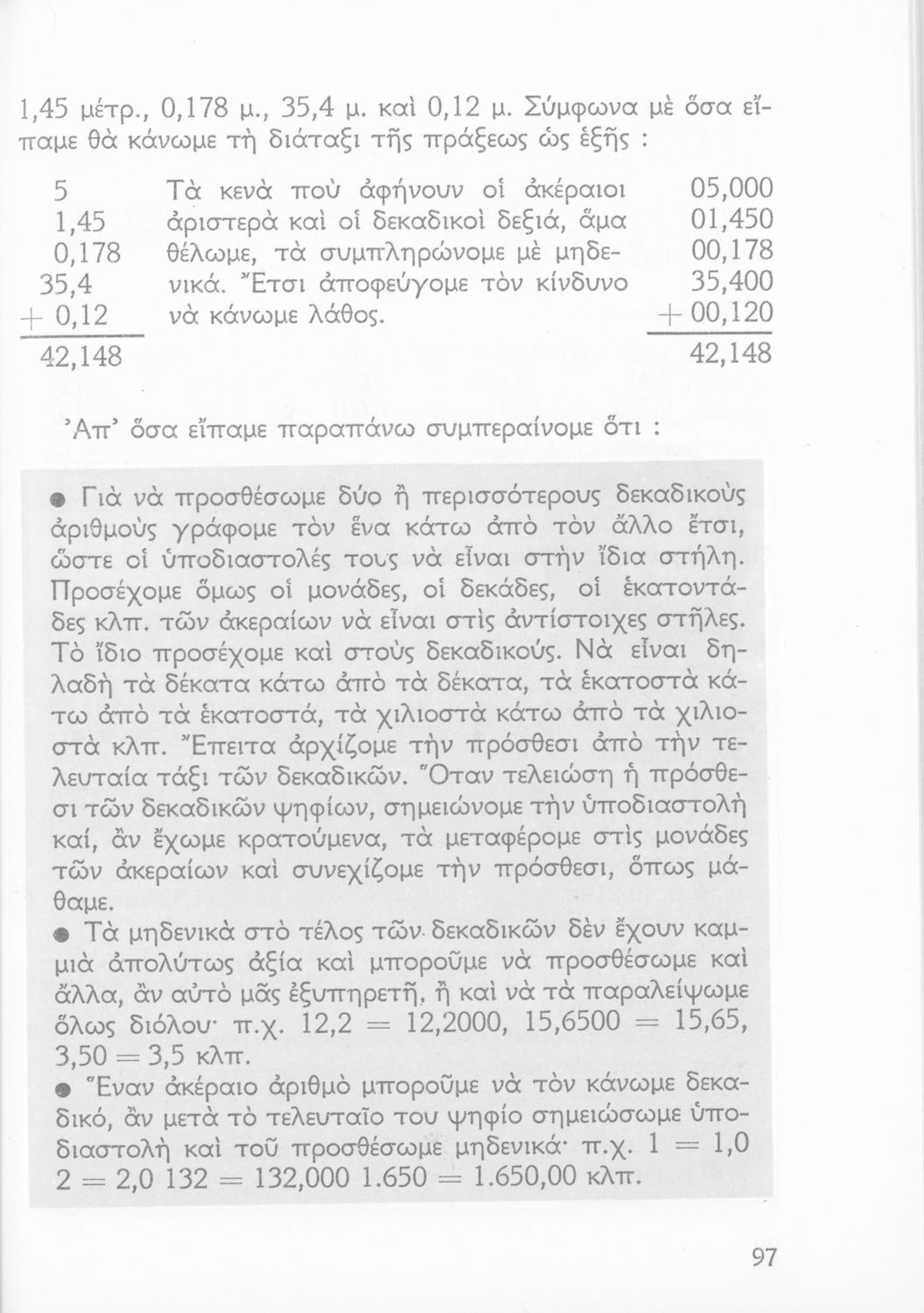 LDR 01226 2200217 4500 035 ## _a01-19237 040 ## _aΙνστιτούτο Εκπαιδευτικής Πολιτικής 041 ## _ael 100 ## _aΗλίας Κων. Σαμαράς 110 ## _a19237 245 0# _aΑριθμητική και γεωμετρία Δ΄ τάξεως Δημοτικού 250 ## _a3η Έκδοση 260 ## _aΑθήνα _bΟργανισμός Εκδόσεως Διδακτικών Βιβλίων _c1974 300 ## _a164 _bΣκίτσα και φωτογραφίες (έγχρωμα), εξώφυλλο (έγχρωμο) _c19 520 ## _aΣχολικό εγχειρίδιο Αριθμητικής Δ΄ Δημοτικού χωρισμένο σε πρακτικά προβλήματα και τις λύσεις τους που περιλαμβάνει και κάποια στοιχεία Γεωμετρίας. 521 ## _aΔ' Δημοτικού 522 ## _aΕλλάδα 546 ## _aΔημοτική 563 ## _aΜαλακό Εξώφυλλο 583 ## _a2446/17-4-1974 _c1974 650 #4 _aΑριθμητικές πράξεις με ακέραιους _aΔεκαδικούς και συμμιγείς αριθμούς _aΚλάσματα