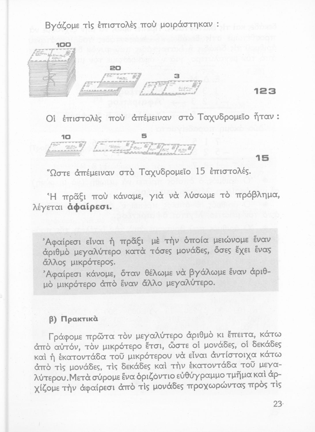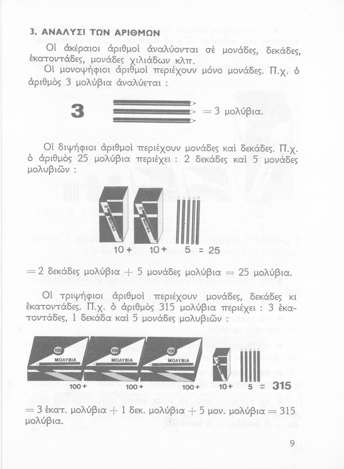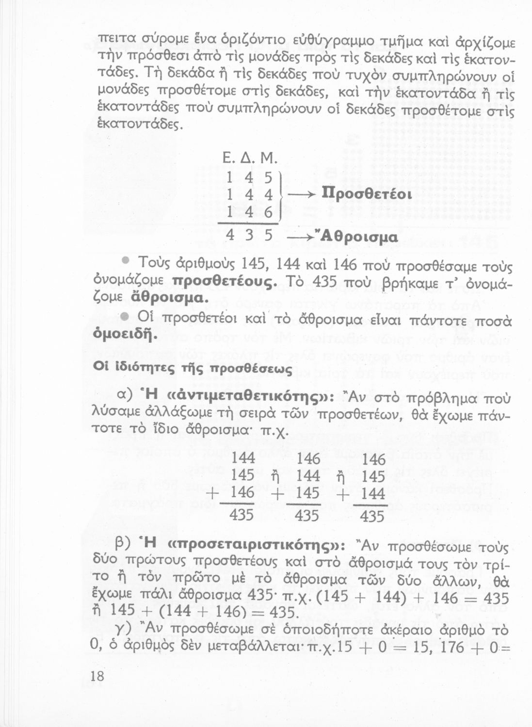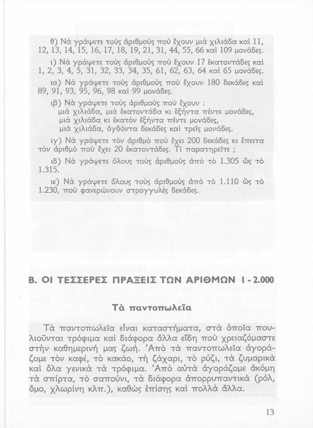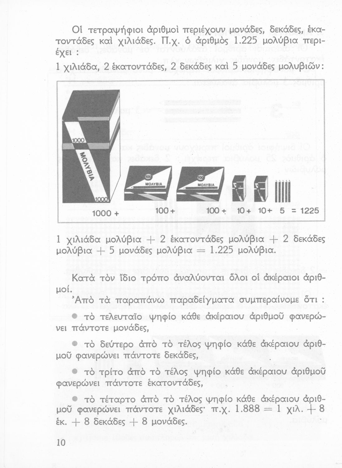 Σχολικό εγχειρίδιο Αριθμητικής Δ΄ Δημοτικού χωρισμένο σε πρακτικά προβλήματα και τις λύσεις τους που περιλαμβάνει και κάποια στοιχεία Γεωμετρίας.