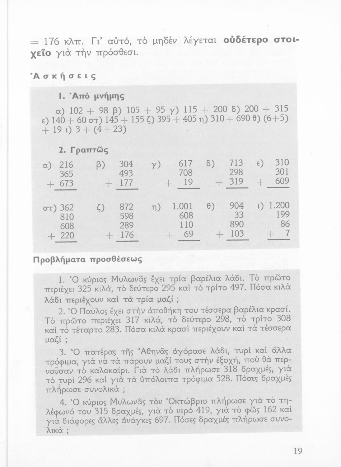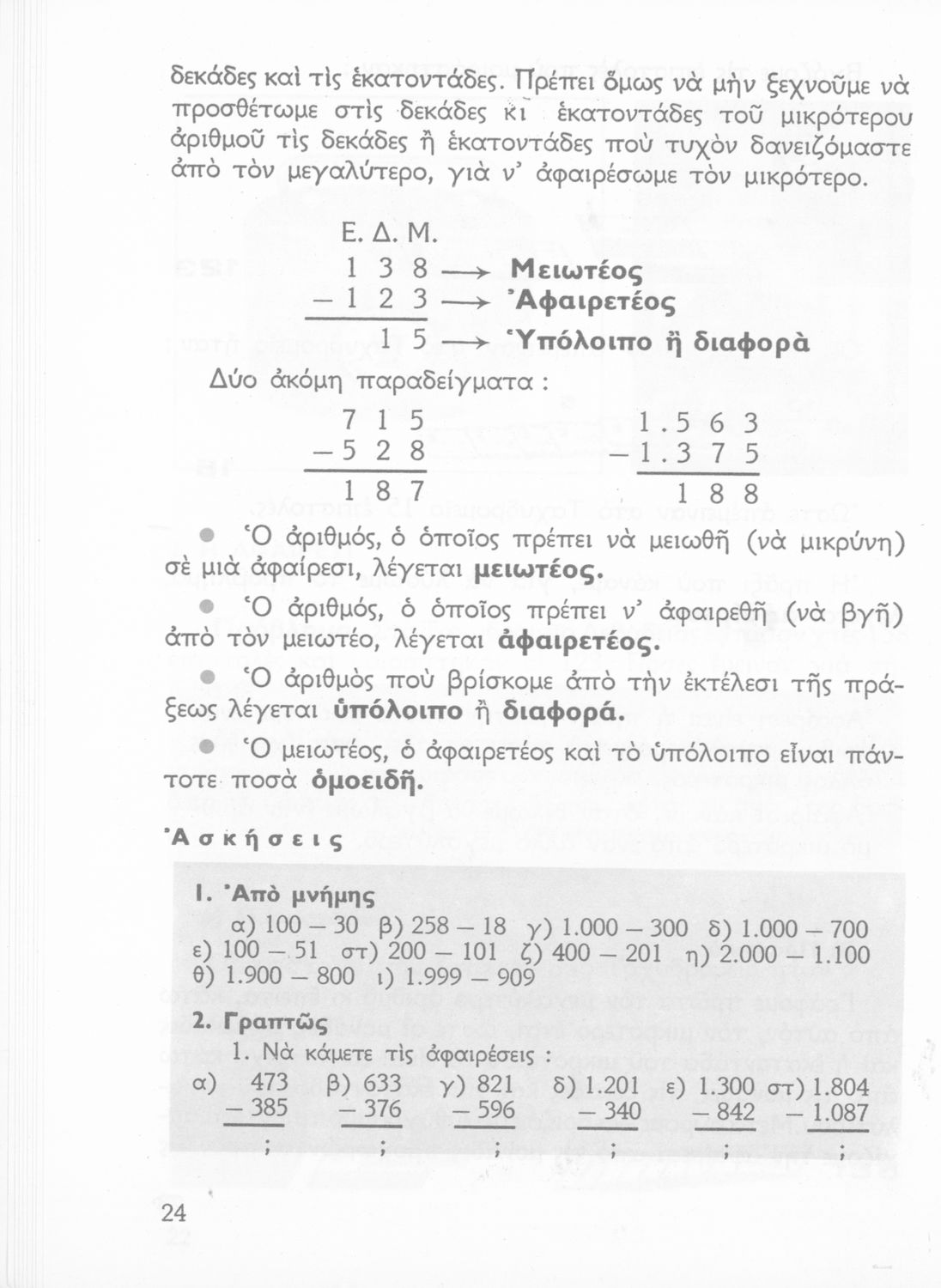 LDR 01226 2200217 4500 035 ## _a01-19237 040 ## _aΙνστιτούτο Εκπαιδευτικής Πολιτικής 041 ## _ael 100 ## _aΗλίας Κων. Σαμαράς 110 ## _a19237 245 0# _aΑριθμητική και γεωμετρία Δ΄ τάξεως Δημοτικού 250 ## _a3η Έκδοση 260 ## _aΑθήνα _bΟργανισμός Εκδόσεως Διδακτικών Βιβλίων _c1974 300 ## _a164 _bΣκίτσα και φωτογραφίες (έγχρωμα), εξώφυλλο (έγχρωμο) _c19 520 ## _aΣχολικό εγχειρίδιο Αριθμητικής Δ΄ Δημοτικού χωρισμένο σε πρακτικά προβλήματα και τις λύσεις τους που περιλαμβάνει και κάποια στοιχεία Γεωμετρίας. 521 ## _aΔ' Δημοτικού 522 ## _aΕλλάδα 546 ## _aΔημοτική 563 ## _aΜαλακό Εξώφυλλο 583 ## _a2446/17-4-1974 _c1974 650 #4 _aΑριθμητικές πράξεις με ακέραιους _aΔεκαδικούς και συμμιγείς αριθμούς _aΚλάσματα