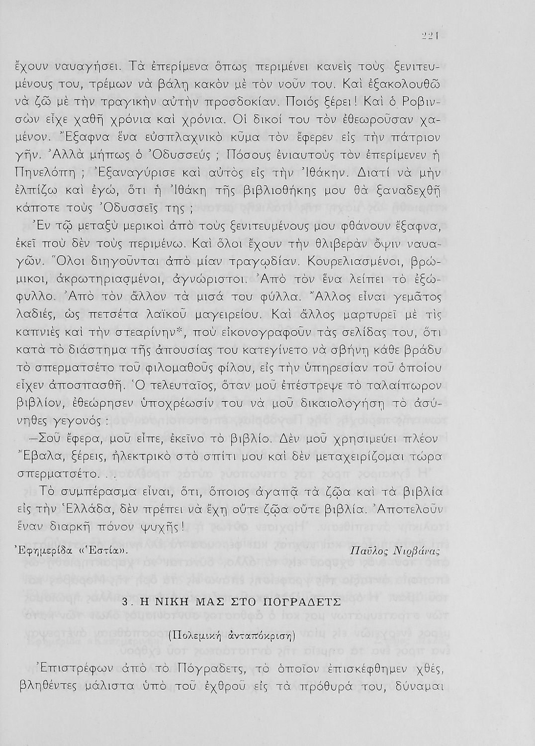 Σχολικό εγχειρίδιο Νέων Ελληνικών ΣΤ΄ Γυμνασίου και Λυκείου που περιλαμβάνει κείμενα Ελλήνων και ξένων συγγραφέων με θέματα από την σύγχρονη ελληνική ιστορία και την οικογενειακή και θρησκευτική ζωή, και ...