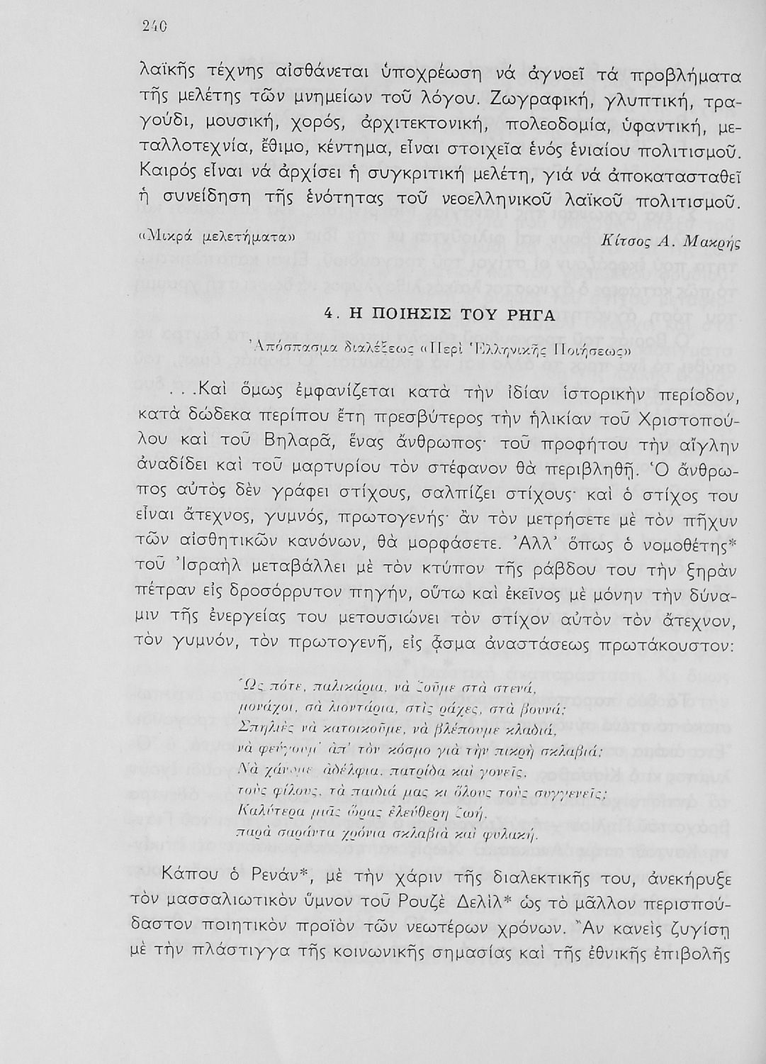 Σχολικό εγχειρίδιο Νέων Ελληνικών Δ΄ Γυμνασίου και Β΄ Αστικού Σχολείου που περιέχει πεζά και ποιήματα Ελλήνων συγγραφέων εμπνευσμένα από τη θρησκευτική και κοινωνική ζωή, την ελληνική μυθολογία, την αρχαία και
