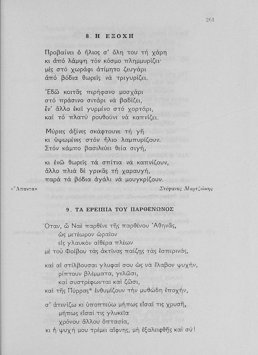 Σχολικό εγχειρίδιο Νέων Ελληνικών Β΄ Εξαταξίου Γυμνασίου που περιλαμβάνει που περιλαμβάνει ποιήματα και πεζά Ελλήνων συγγραφέων εμπνευσμένα από την αρχαία και σύγχρονη ελληνική ιστορία, την ελληνική φύση και ...