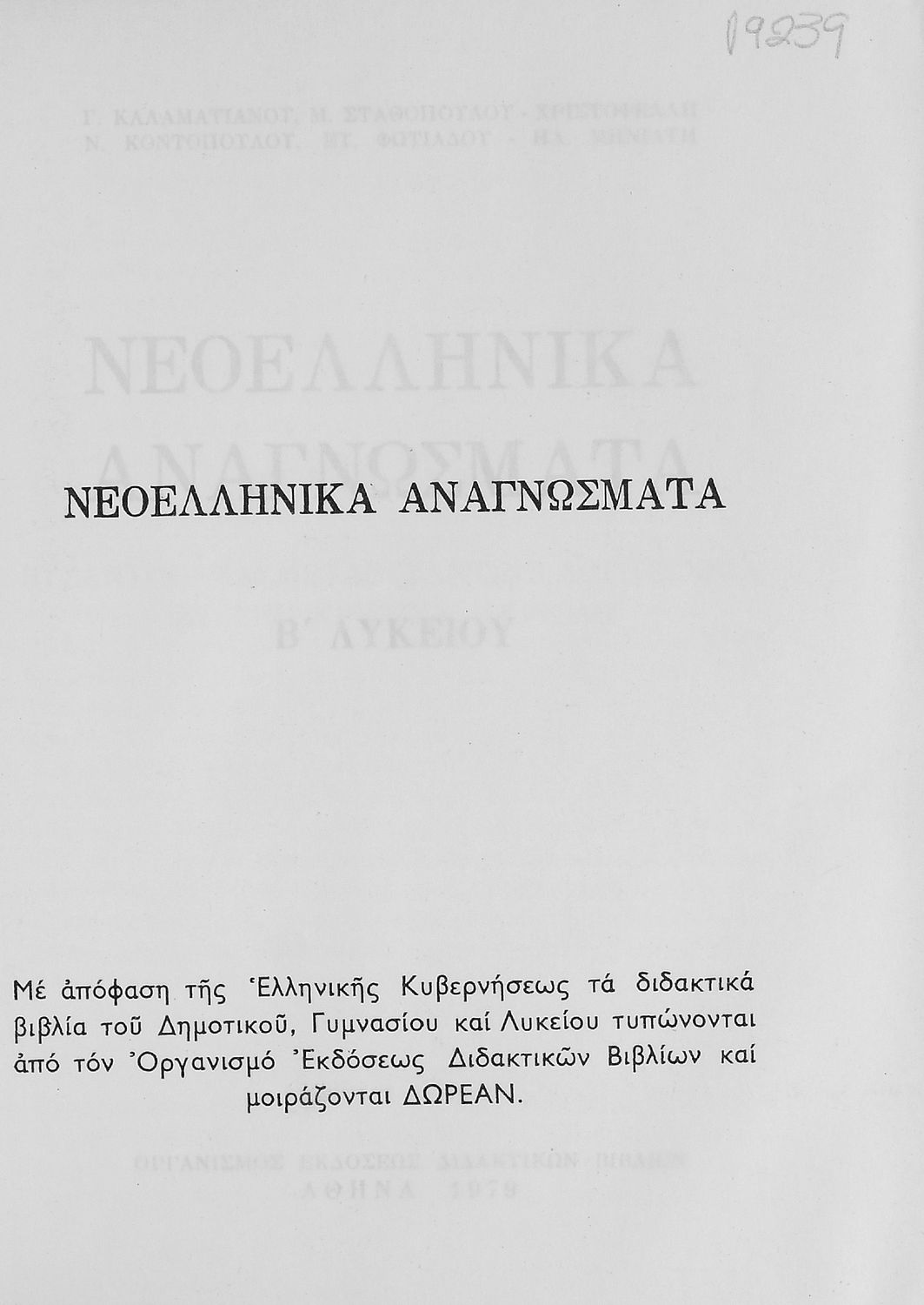 Εκδότης: Οργανισμός Εκδόσεως Διδακτικών Βιβλίων Έτος έκδοσης: 1979 Τόπος έκδοσης: Αθήνα Έκδοση: 17η Υπουργική απόφαση / Σύμβαση: 3124/30-11-1978 Έτος έγκρισης: 1978 |