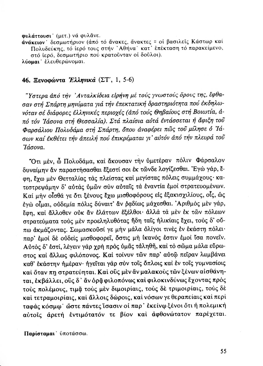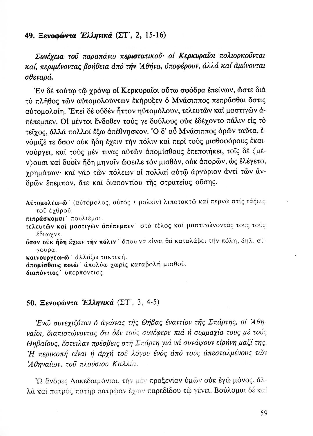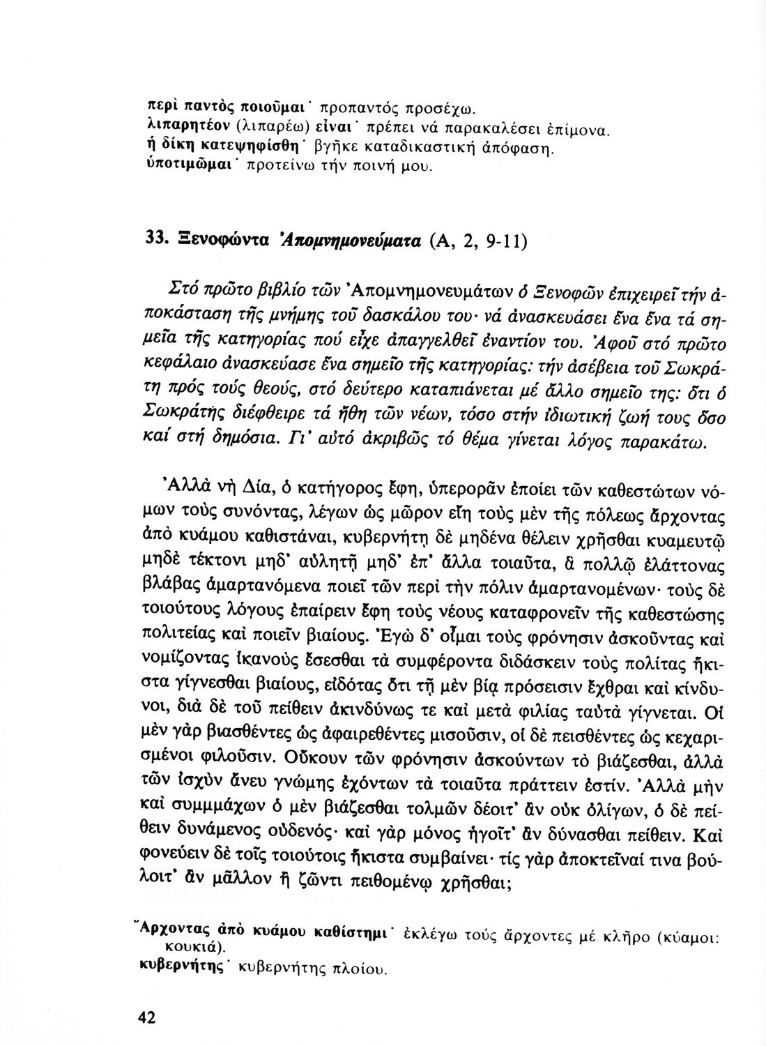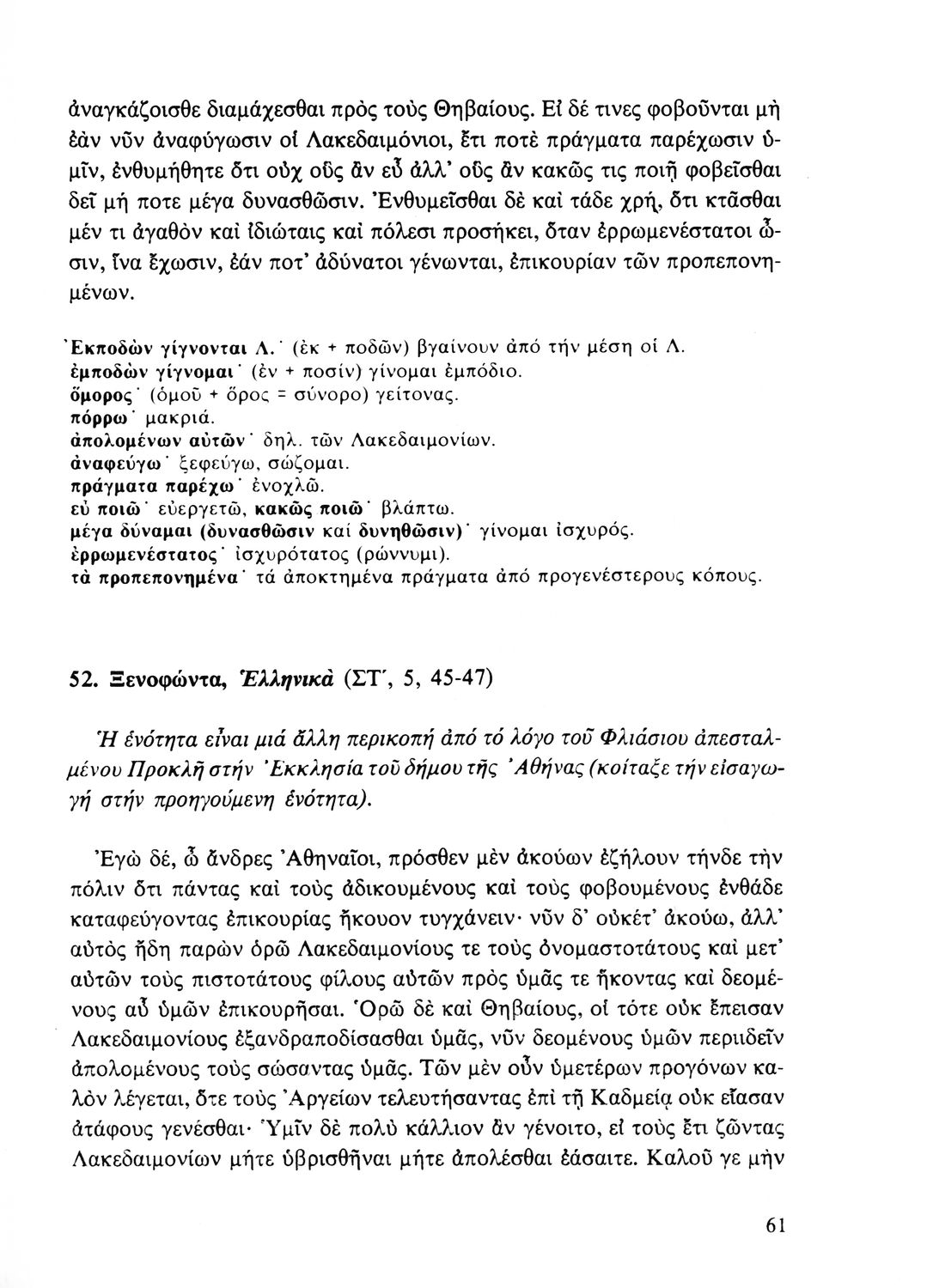 Σχολικό εγχειρίδιο Αρχαίων Ελληνικών Β' Λυκείου που περιλαμβάνει αποσπάσματα από έργα αρχαίων Ελλήνων συγγραφέων και γραμματικές και ερμηνευτικές παρατηρήσεις.