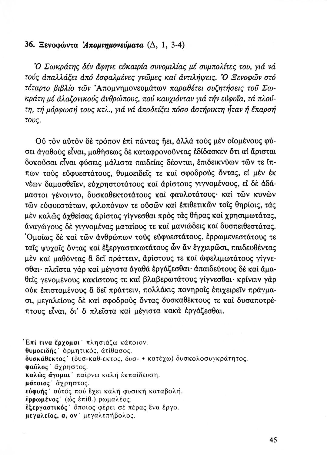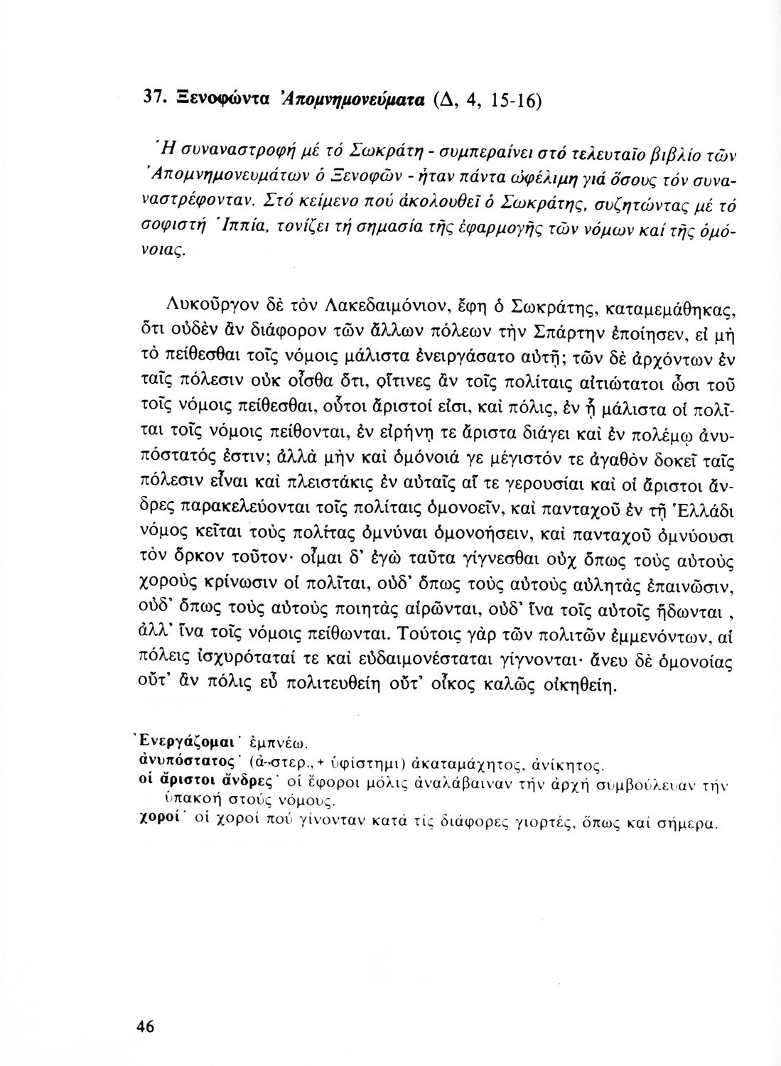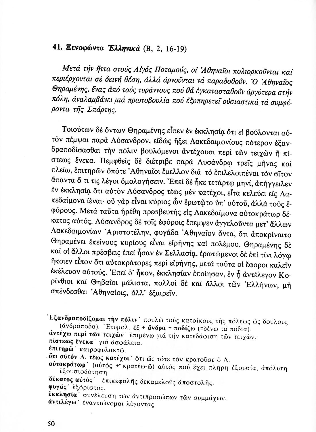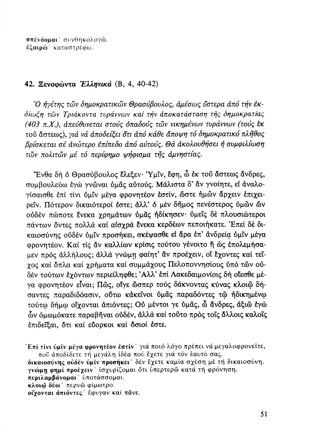 Σχολικό εγχειρίδιο Αρχαίων Ελληνικών Β' Λυκείου που περιλαμβάνει αποσπάσματα από έργα αρχαίων Ελλήνων συγγραφέων και γραμματικές και ερμηνευτικές παρατηρήσεις.