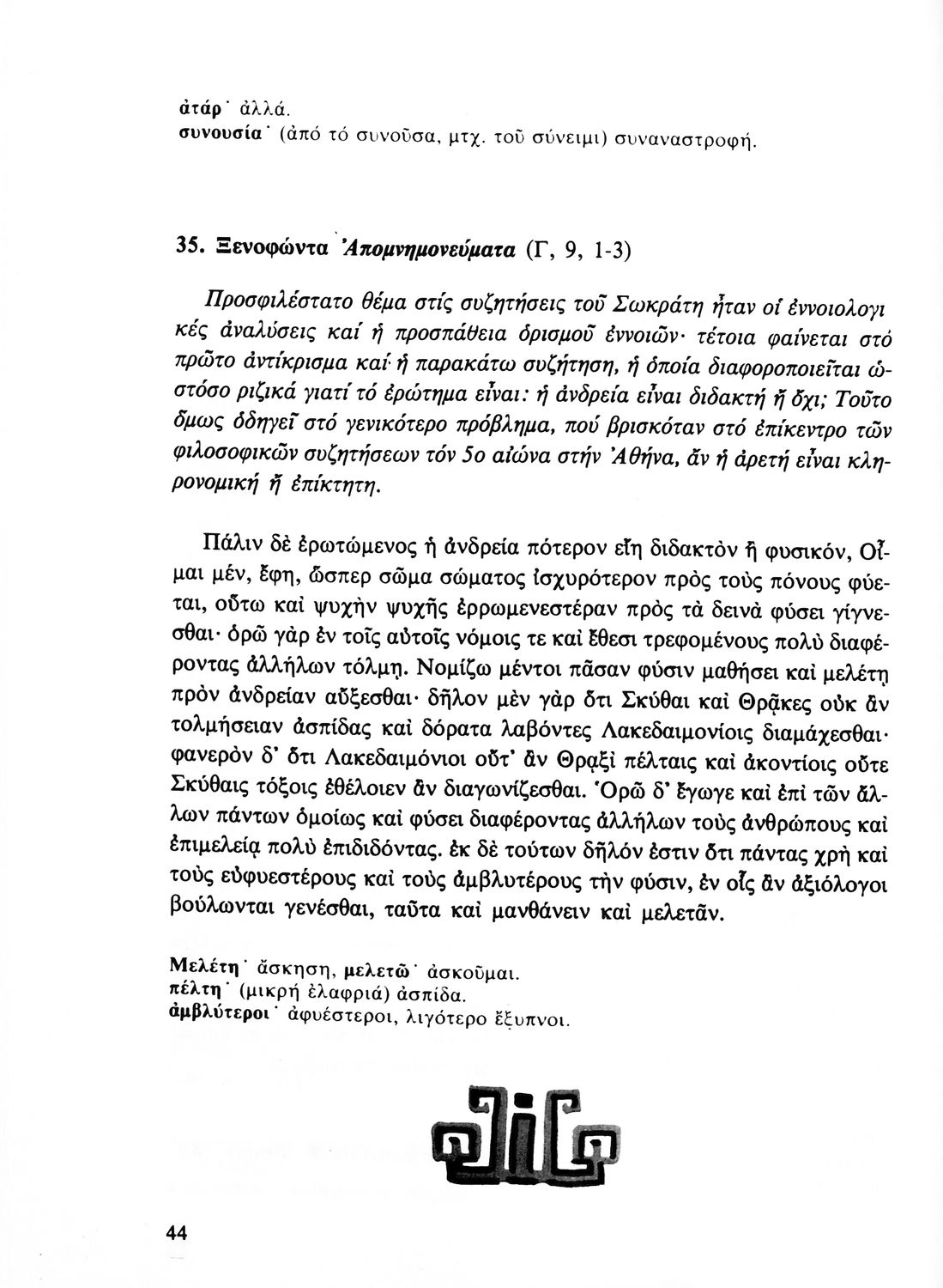 Παιδαγωγικό βοήθημα Αρχαίων Ελληνικών Γ΄ Λυκείου που είχε ως στόχο να βοηθήσει τους φιλολόγους στην κατάρτιση της διδακτέας ύλης και την επιλογή των κατάλληλων θεμάτων.