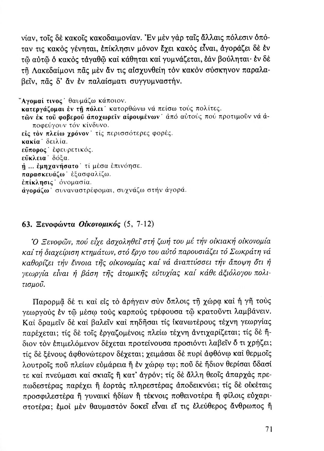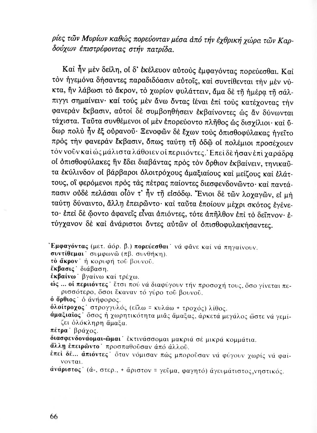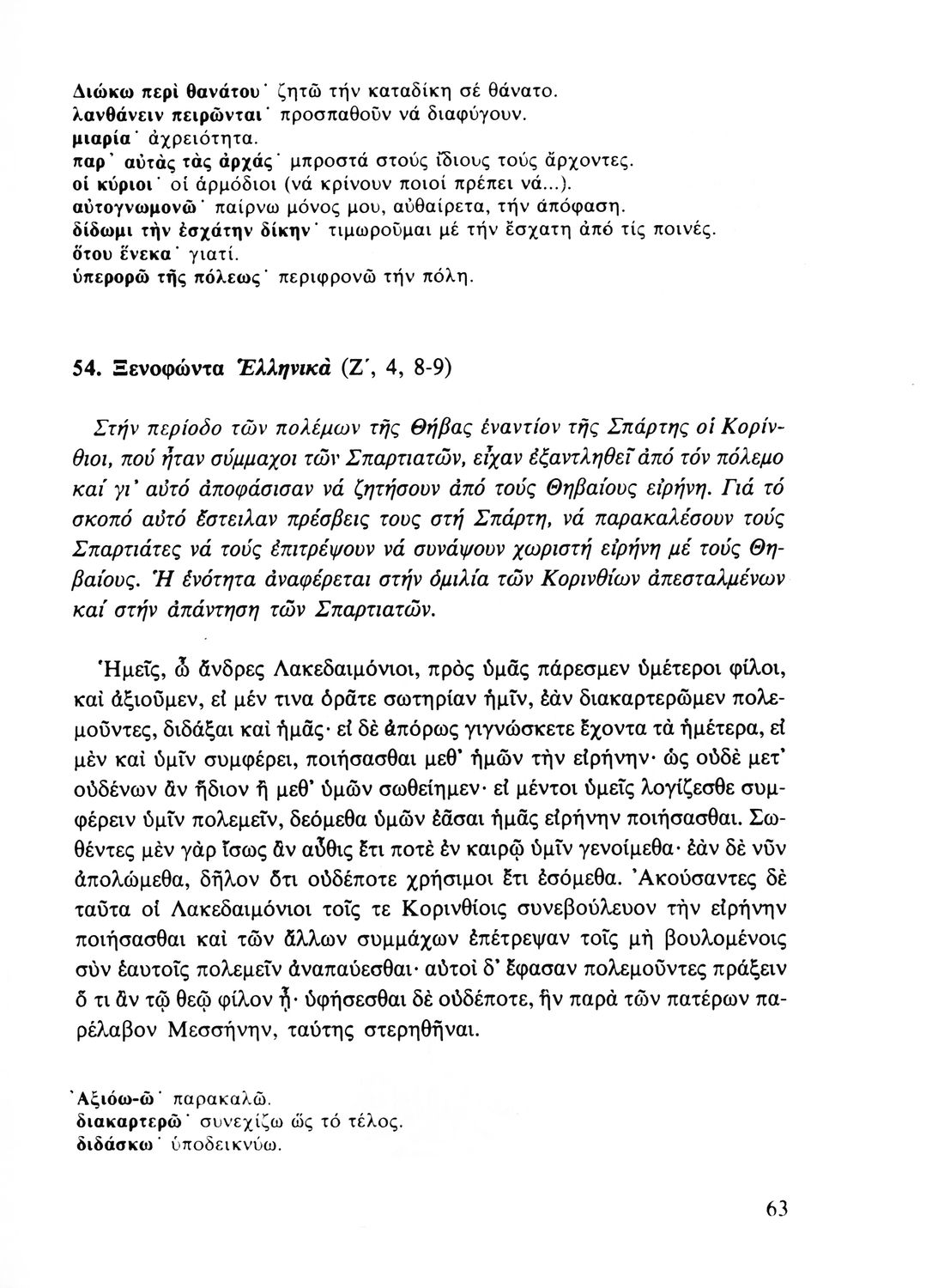 Σχολικό εγχειρίδιο Αρχαίων Ελληνικών Β' Λυκείου που περιλαμβάνει αποσπάσματα από έργα αρχαίων Ελλήνων συγγραφέων και γραμματικές και ερμηνευτικές παρατηρήσεις.