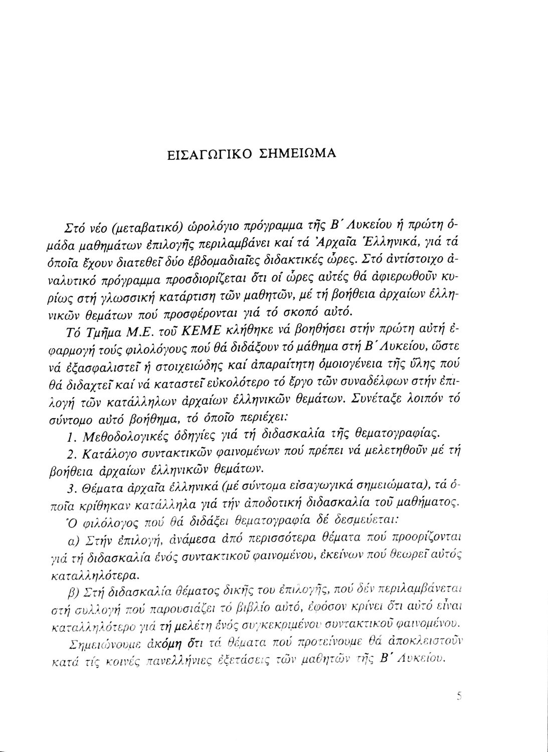 Παιδαγωγικό βοήθημα Αρχαίων Ελληνικών Γ΄ Λυκείου που είχε ως στόχο να βοηθήσει τους φιλολόγους στην κατάρτιση της διδακτέας ύλης και την επιλογή των κατάλληλων θεμάτων.