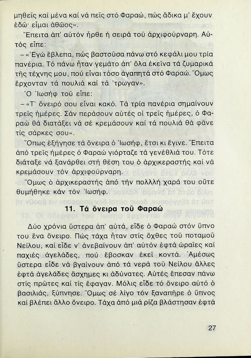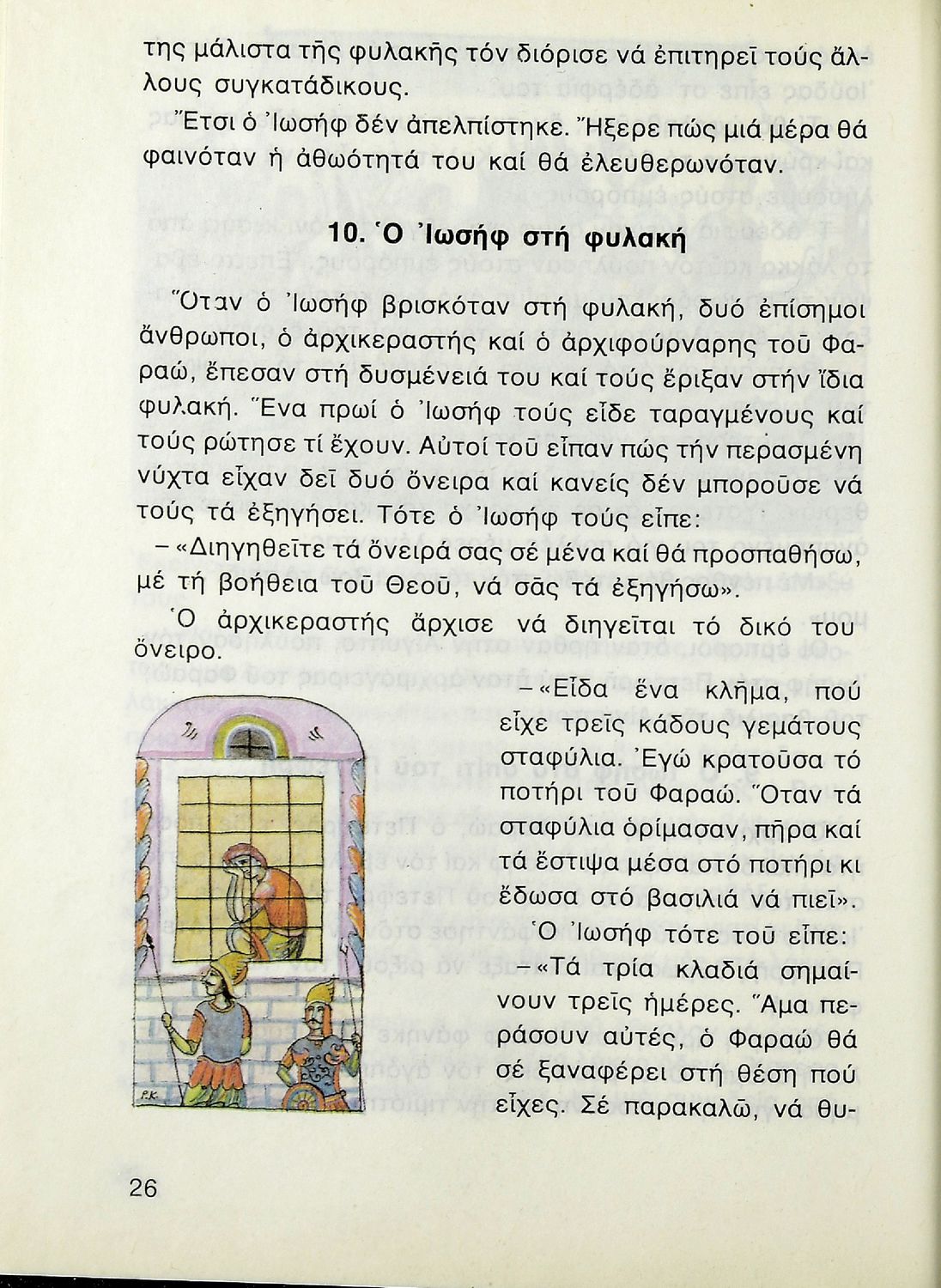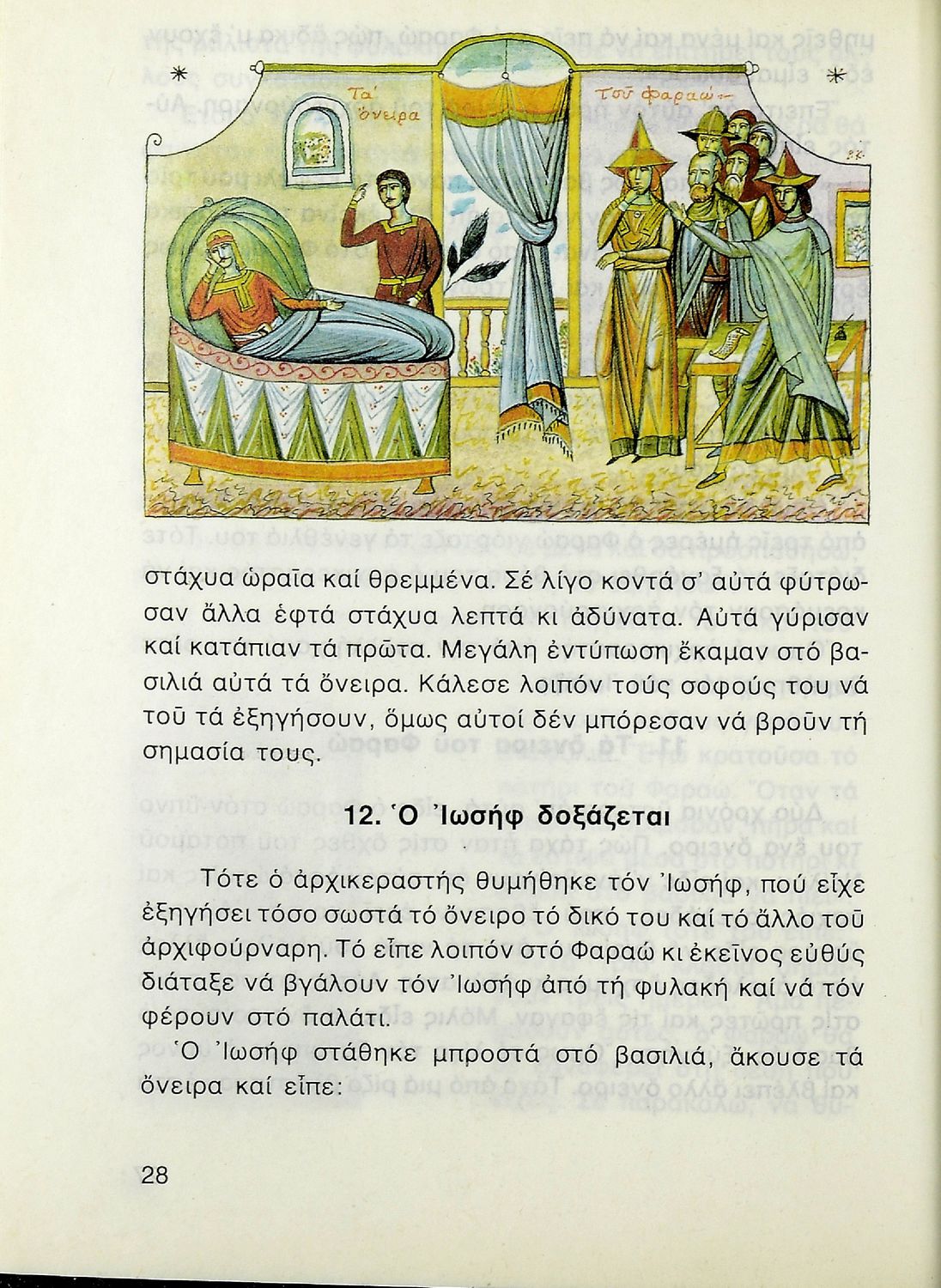 Σχολικό εγχειρίδιο Θρησκευτικών Δημοτικού που συνιστά μία εξιστόρηση της Παλαιάς Διαθήκης από τη δημιουργία του κόσμου ως τους Προφήτες.