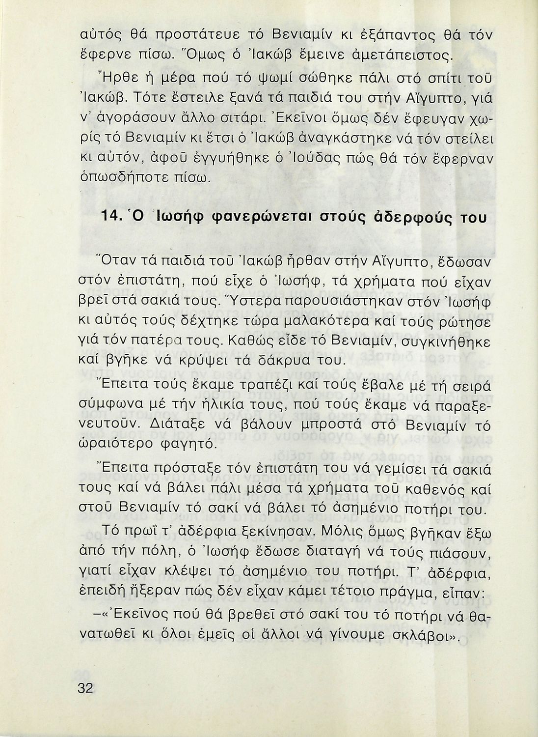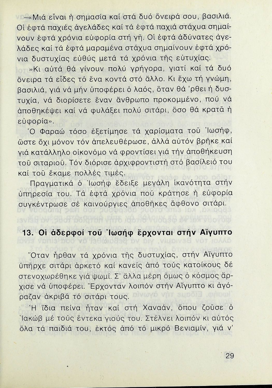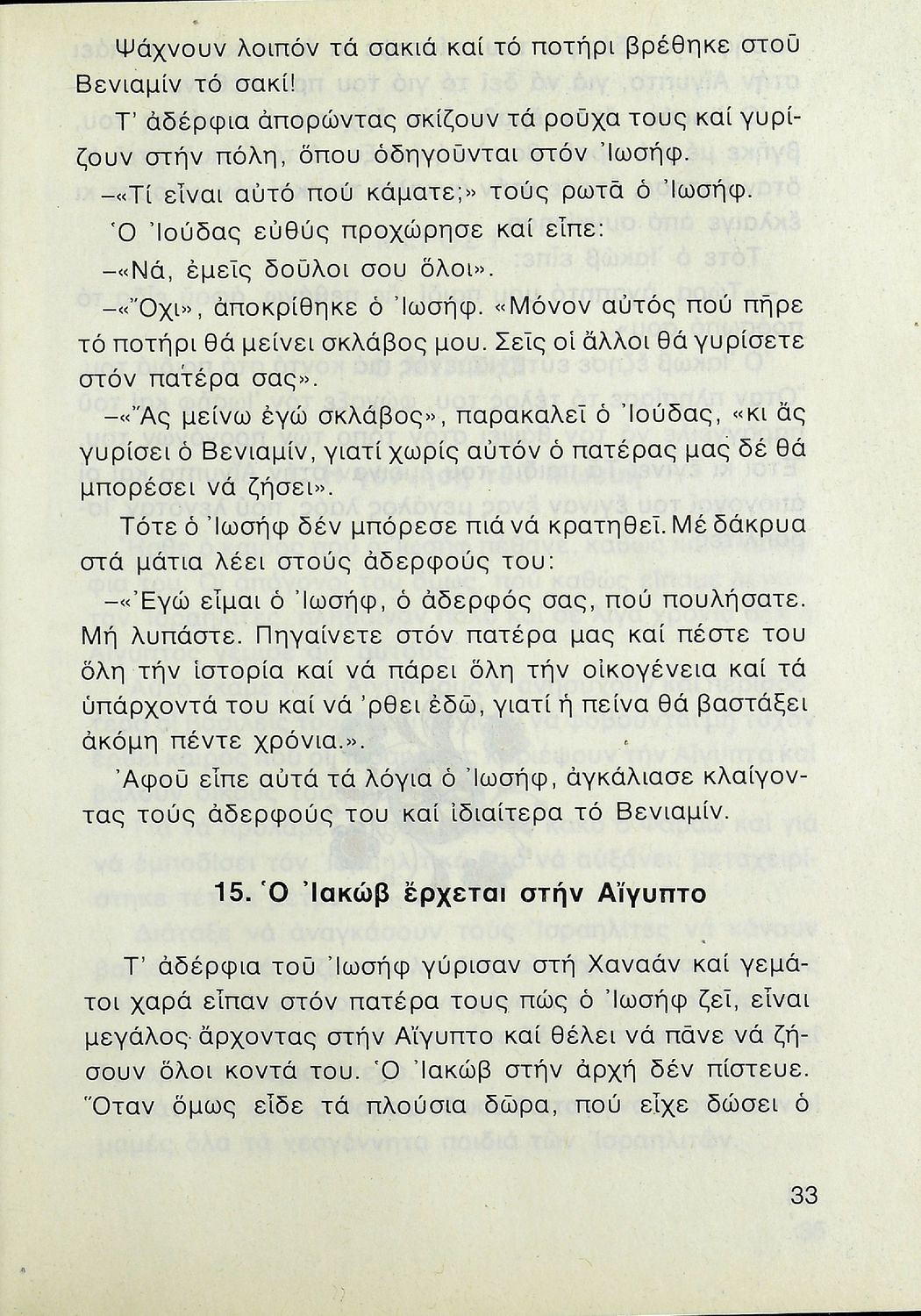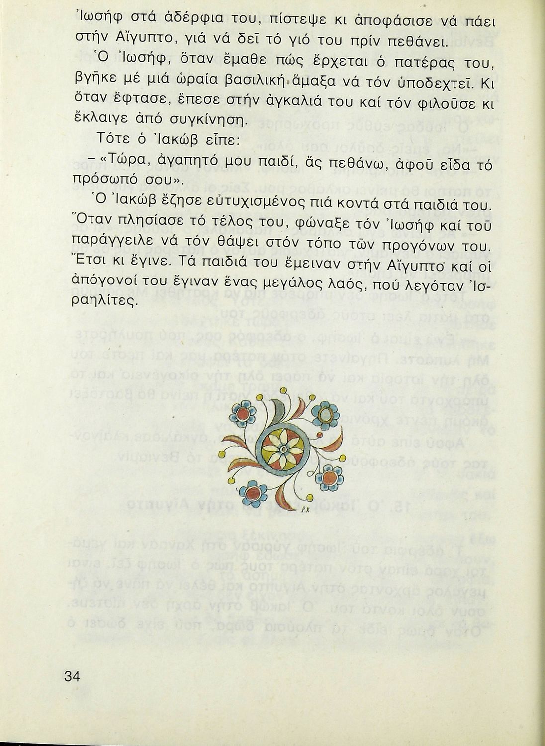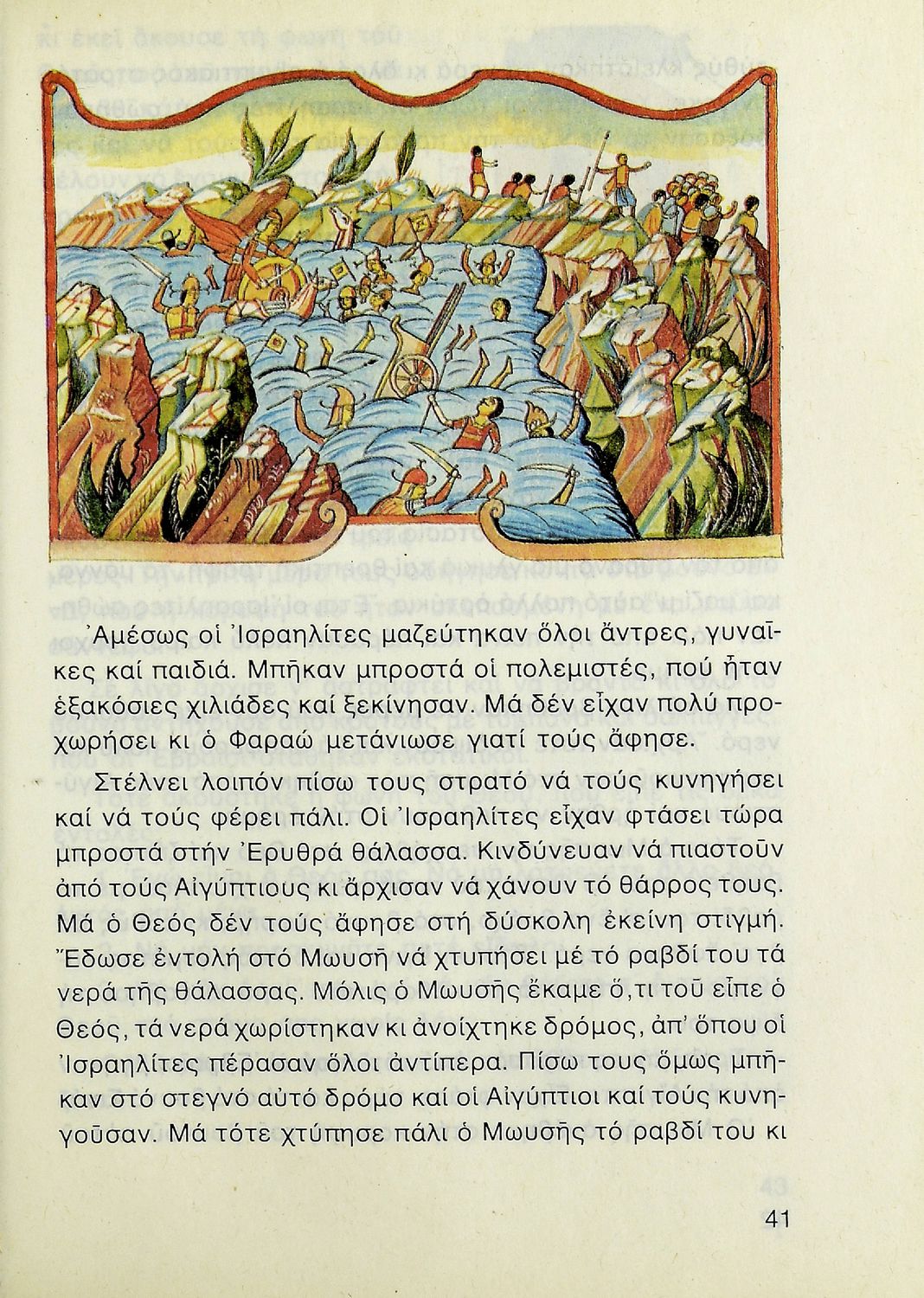 Σχολικό εγχειρίδιο Θρησκευτικών Δημοτικού που αποτελεί μια εξιστόρηση της Παλαιάς και Καινής Διαθήκης από την δημιουργία του κόσμου μέχρι την ανάσταση του Ιησού Χριστού.