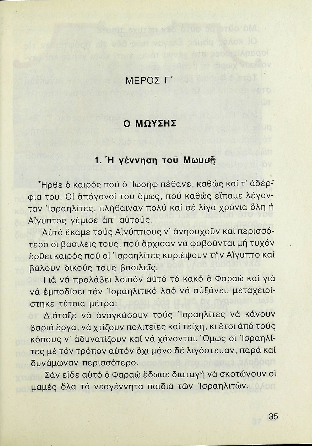Σχολικό εγχειρίδιο Θρησκευτικών [Γ΄ Δημοτικού] που συνιστά μία εξιστόρηση της Παλαιάς Διαθήκης από τη δημιουργία του κόσμου ως τους Προφήτες.