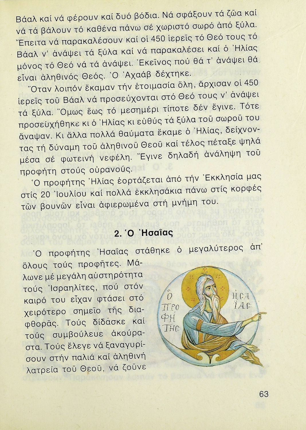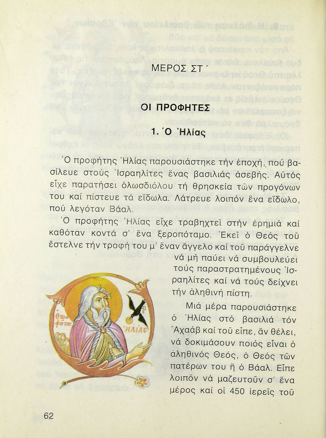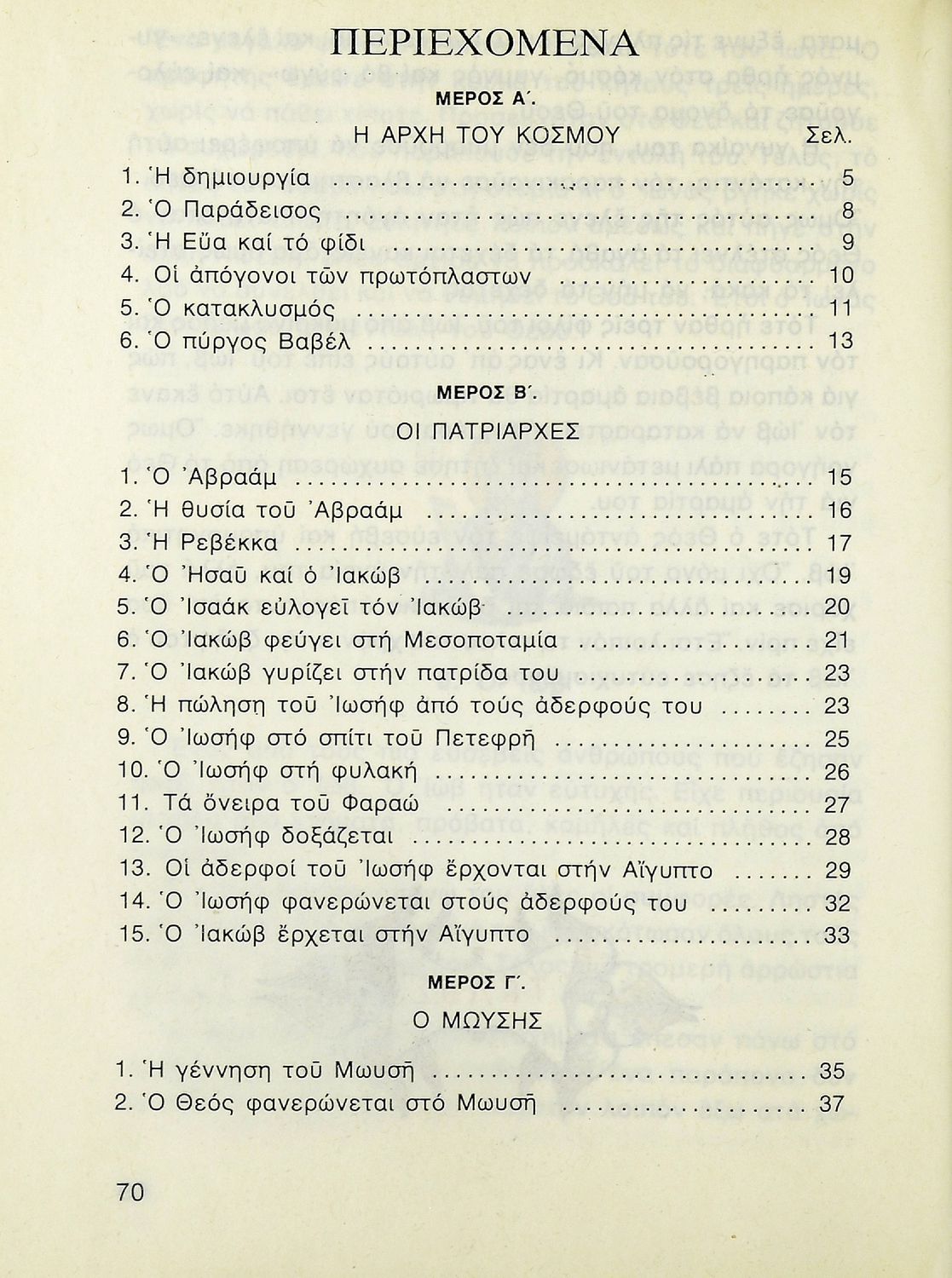 Σχολικό εγχειρίδιο Θρησκευτικών Δημοτικού που αποτελεί μια εξιστόρηση της Παλαιάς και Καινής Διαθήκης από την δημιουργία του κόσμου μέχρι την ανάσταση του Ιησού Χριστού.