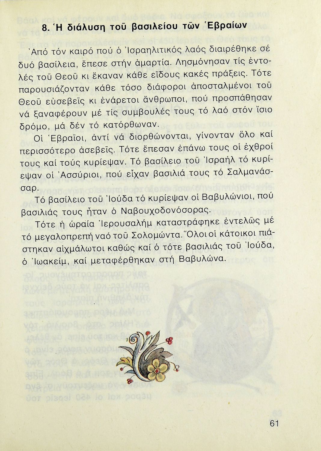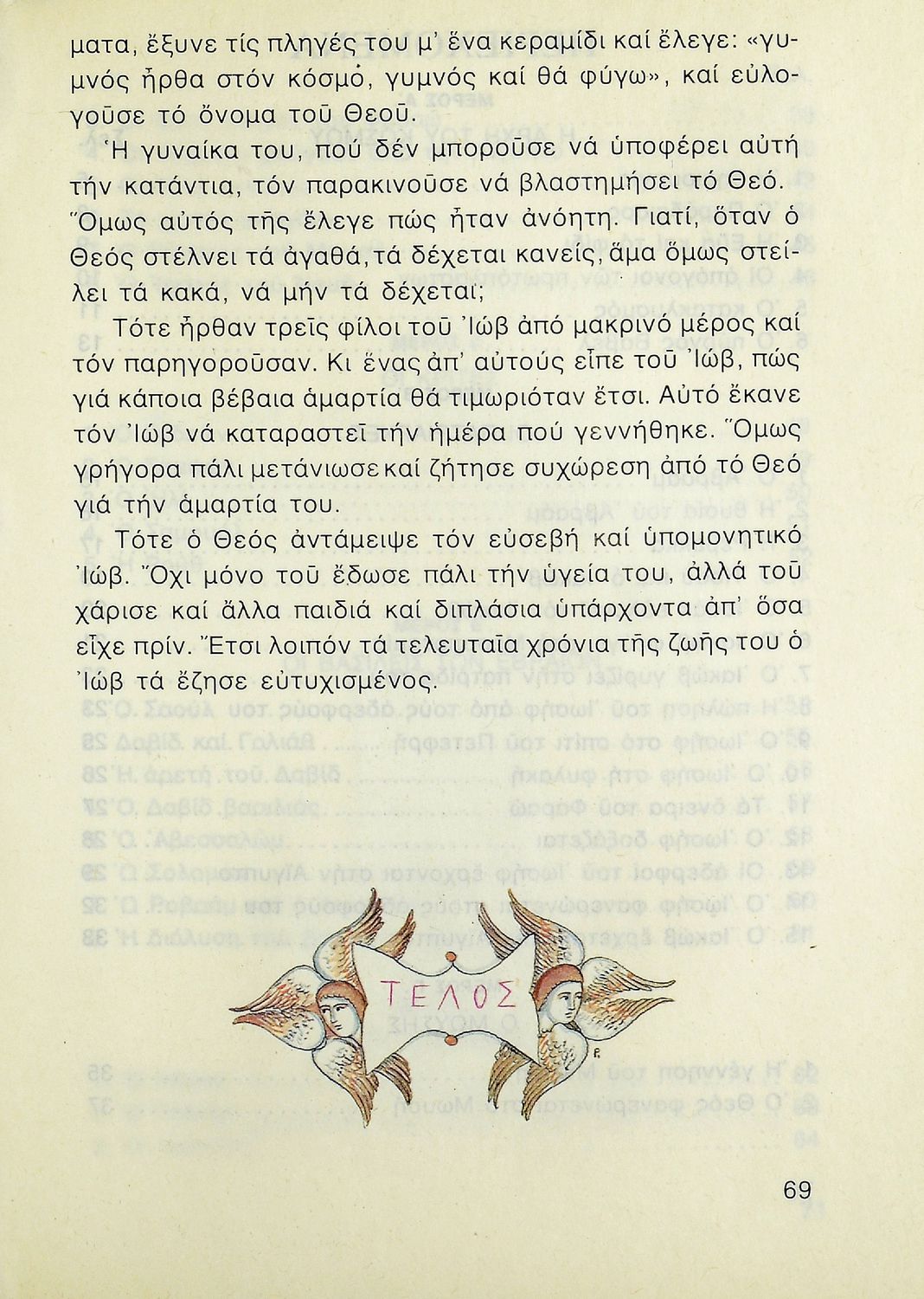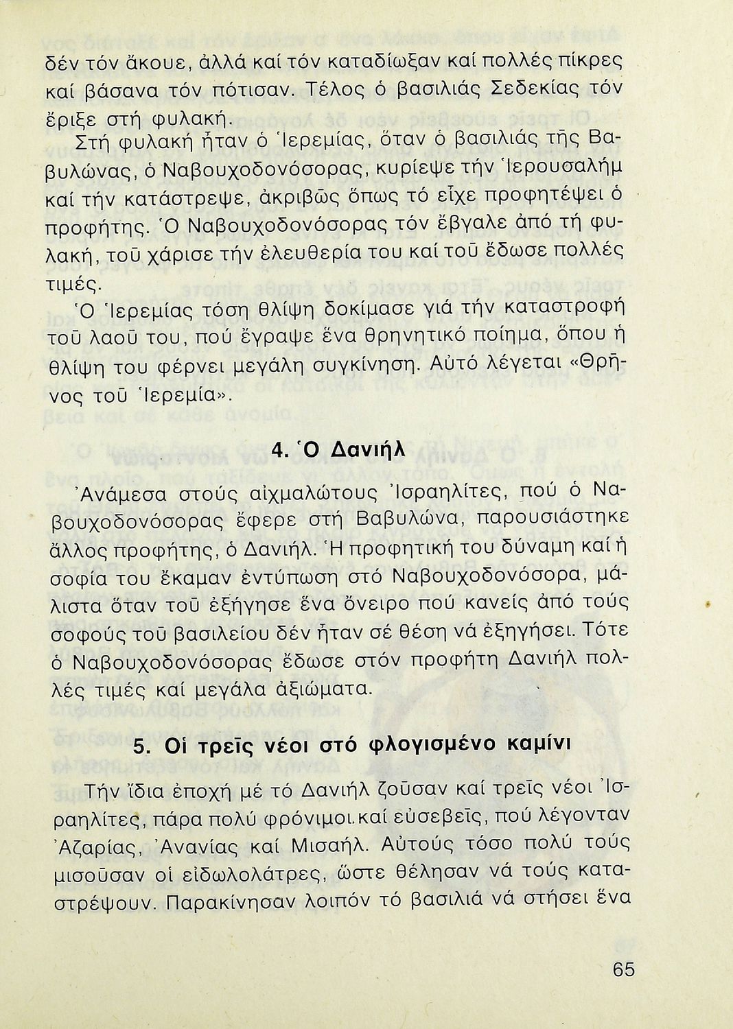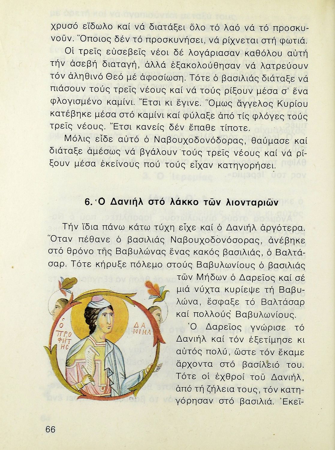 Σχολικό εγχειρίδιο Θρησκευτικών Δημοτικού που αποτελεί μια εξιστόρηση της Παλαιάς και Καινής Διαθήκης από την δημιουργία του κόσμου μέχρι την ανάσταση του Ιησού Χριστού.
