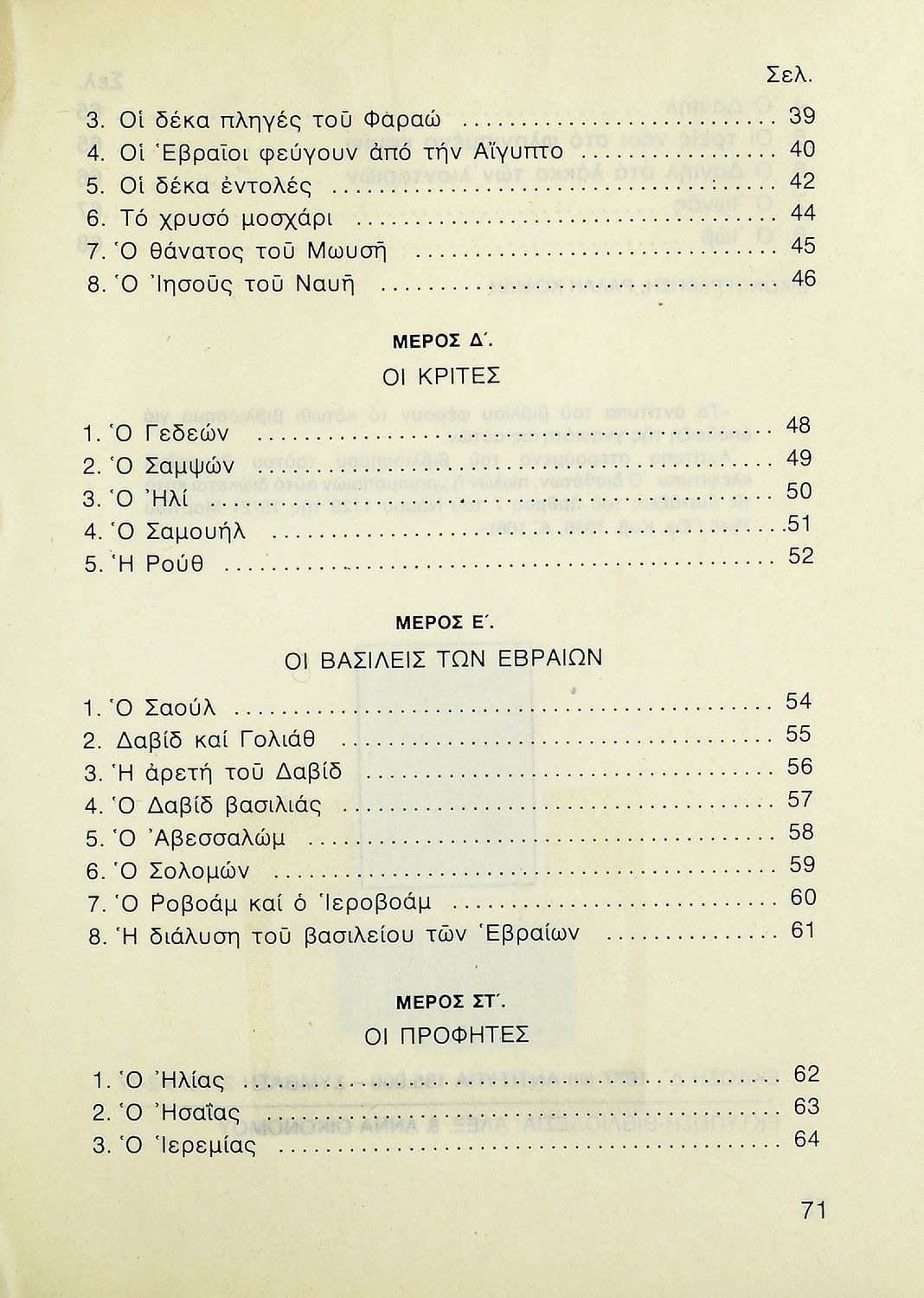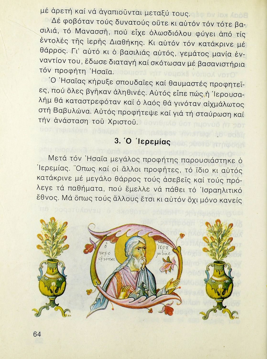 Σχολικό εγχειρίδιο Θρησκευτικών [Γ΄ Δημοτικού] που συνιστά μία εξιστόρηση της Παλαιάς Διαθήκης από τη δημιουργία του κόσμου ως τους Προφήτες.