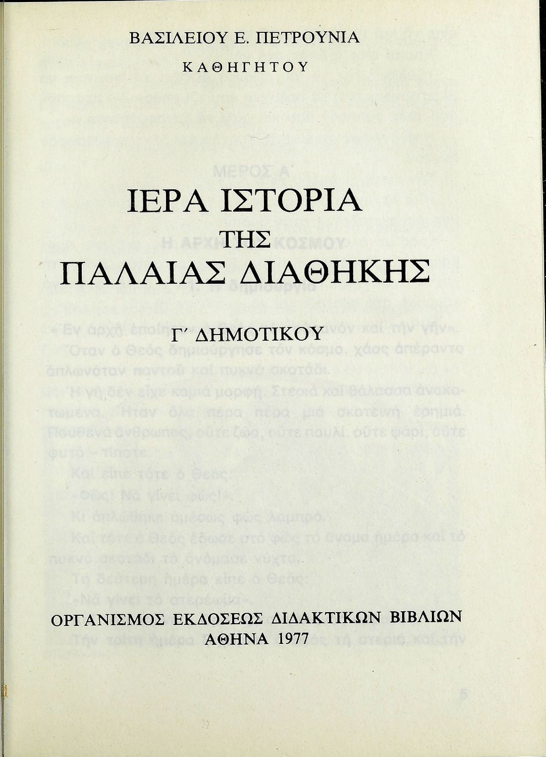 Τίτλος: Ιερά ιστορία της Παλαιάς Διαθήκης : Γ' Δημοτικού
