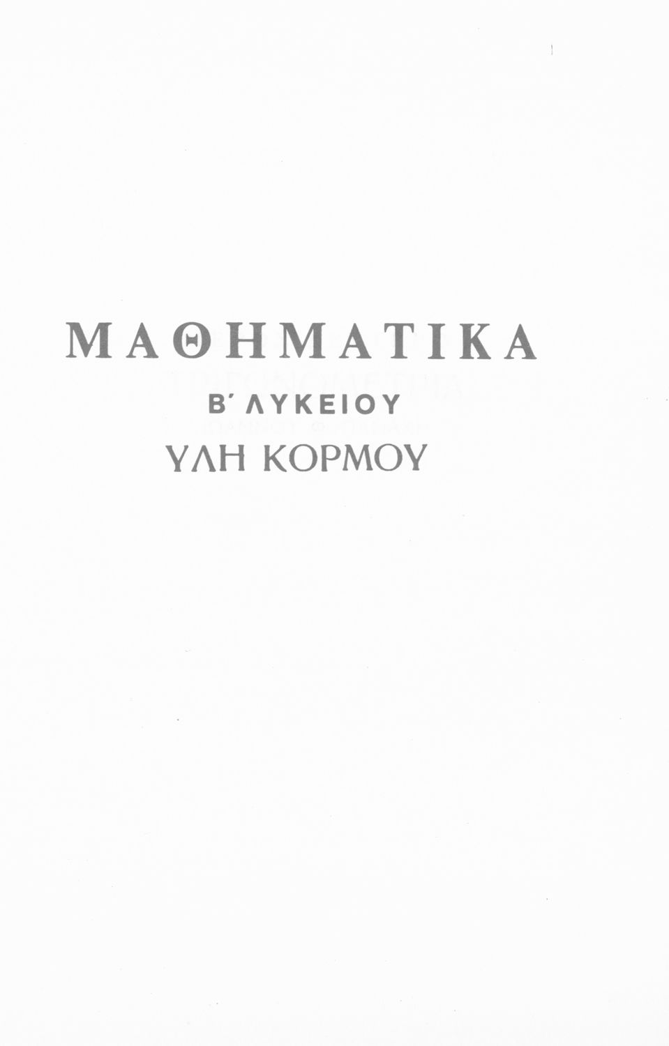 Βαθμίδα εκπαίδευσης: Δευτεροβάθμια Τάξη: Β' Λυκείου Μάθημα: Μαθηματικά Γλώσσα: Δημοτική Παρουσίαση περιεχομένου: Σχολικό εγχειρίδιο Μαθηματικών Β΄ Λυκείου χωρισμένο σε Άλγεβρα και Τριγωνομετρία. |