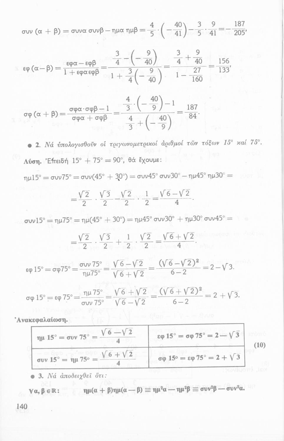 Σχολικό εγχειρίδιο Μαθηματικών Β΄ Λυκείου χωρισμένο σε Άλγεβρα και Τριγωνομετρία.