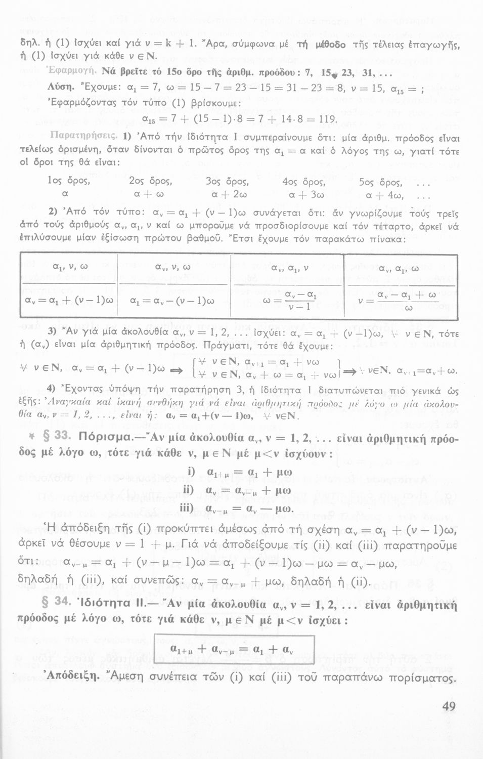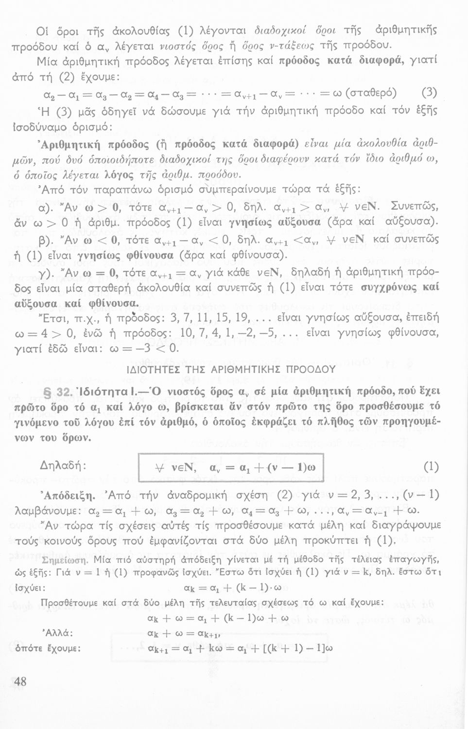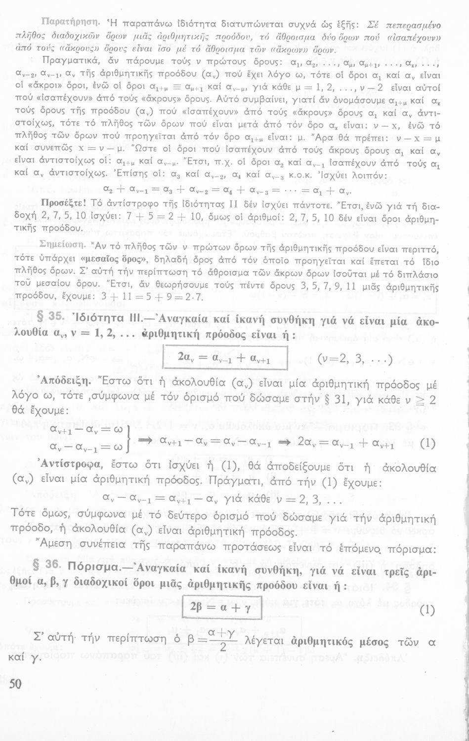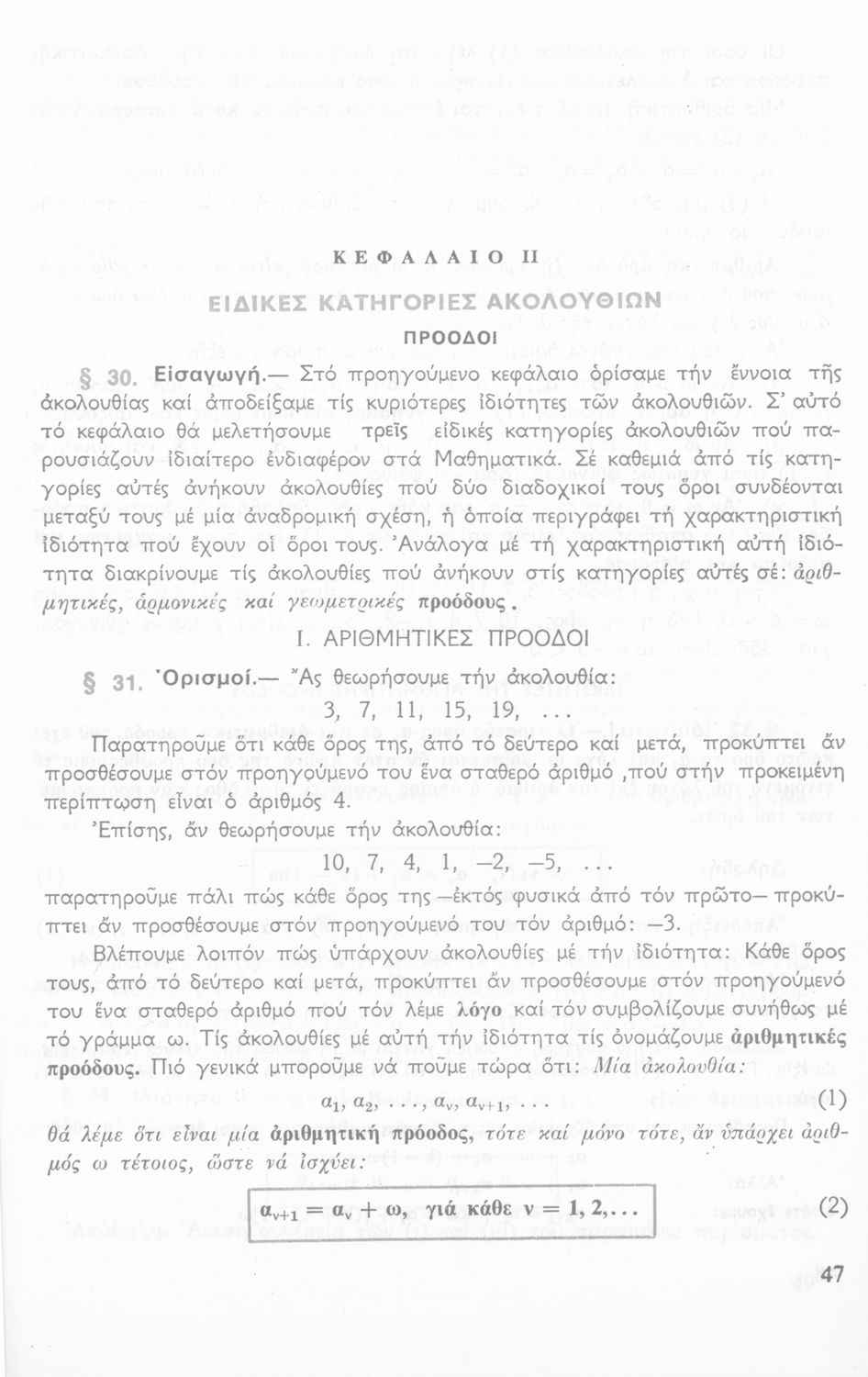 Σχολικό εγχειρίδιο Άλγεβρας Β΄ Λυκείου χωρισμένο σε αξιώματα, θεωρήματα, παρατηρήσεις και ασκήσεις που εστιάζει στα σύνολα, τις ακολουθίες και τις προόδους.