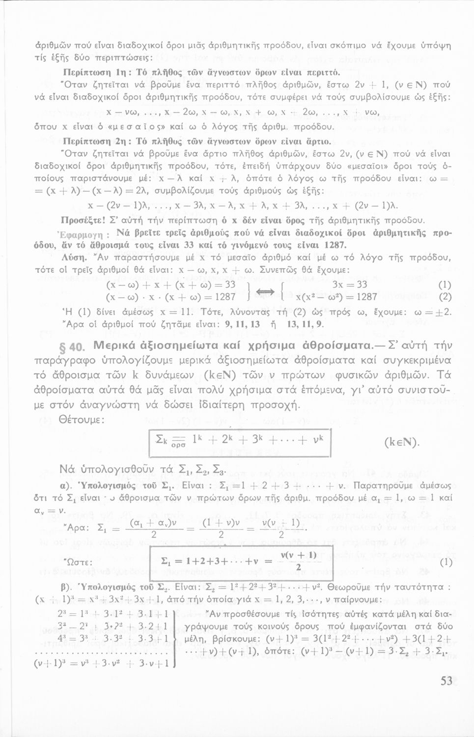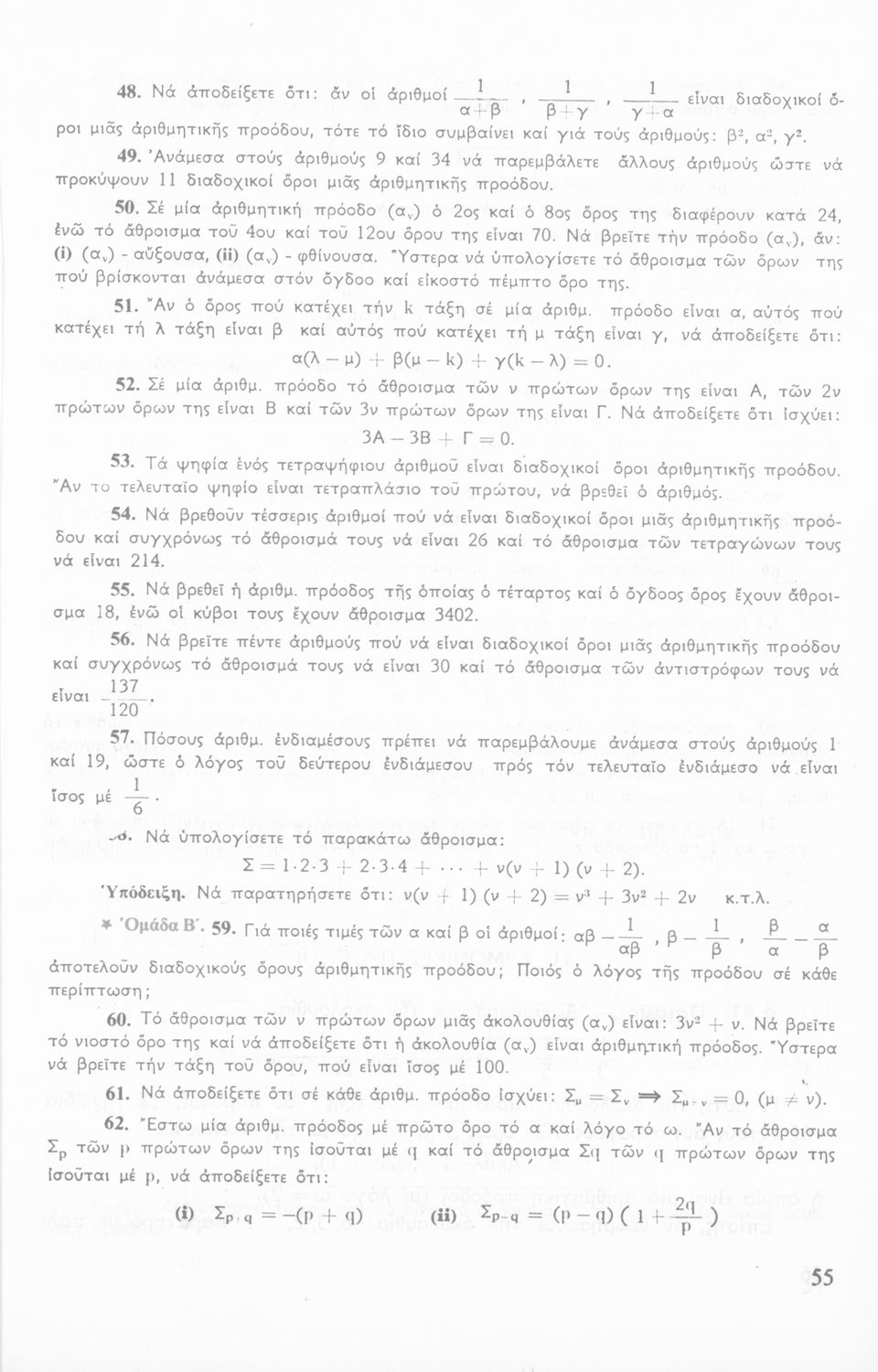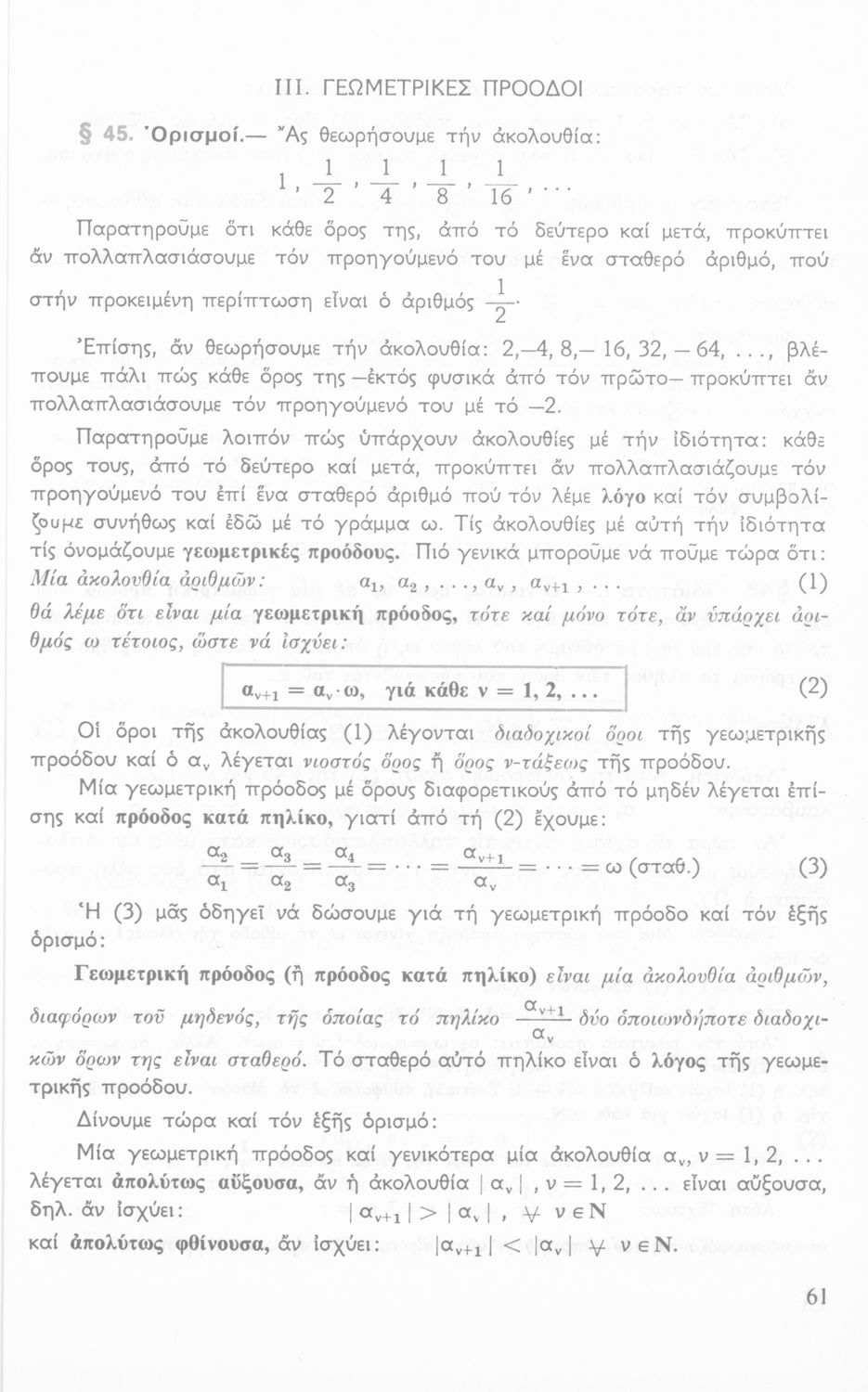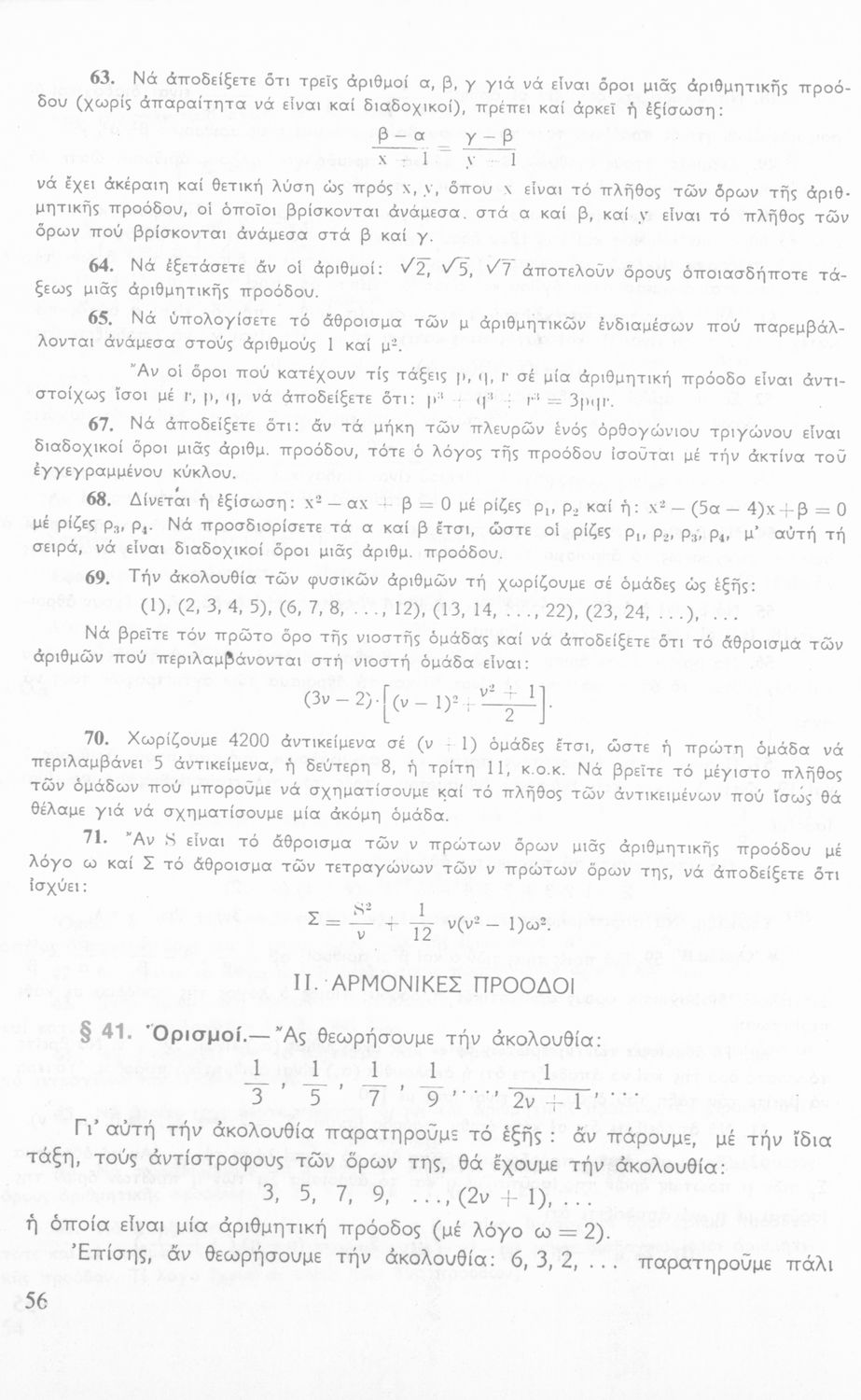 Σχολικό εγχειρίδιο Άλγεβρας Β΄ Λυκείου χωρισμένο σε αξιώματα, θεωρήματα, παρατηρήσεις και ασκήσεις που εστιάζει στα σύνολα, τις ακολουθίες και τις προόδους.