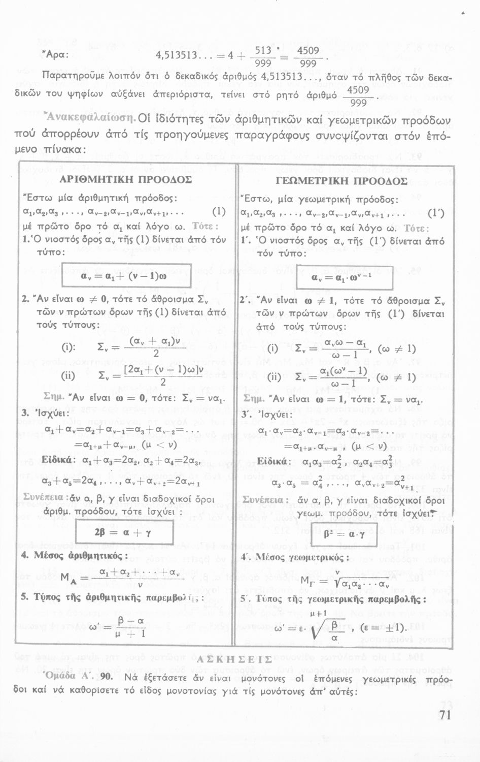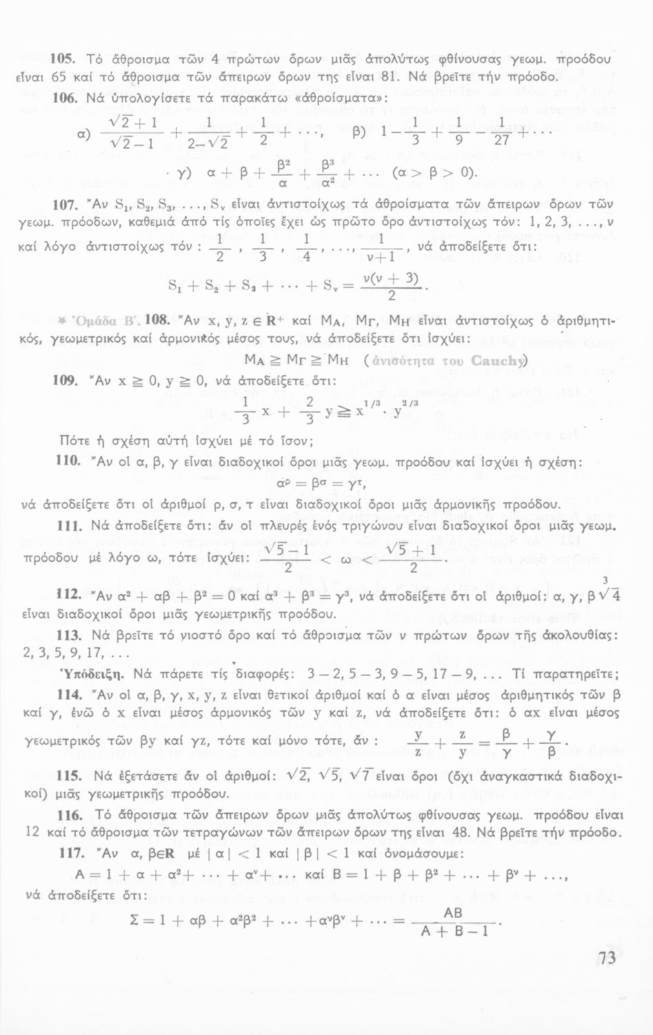 Σχολικό εγχειρίδιο Άλγεβρας Β΄ Λυκείου χωρισμένο σε αξιώματα, θεωρήματα, παρατηρήσεις και ασκήσεις που εστιάζει στα σύνολα, τις ακολουθίες και τις προόδους.