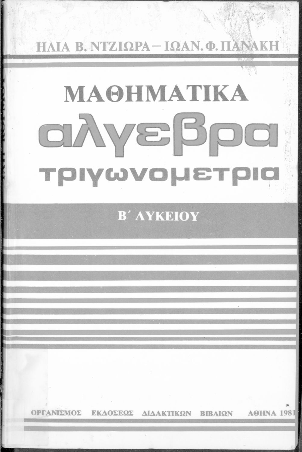 Σχολικό εγχειρίδιο Μαθηματικών Β΄ Λυκείου χωρισμένο σε Άλγεβρα και Τριγωνομετρία.