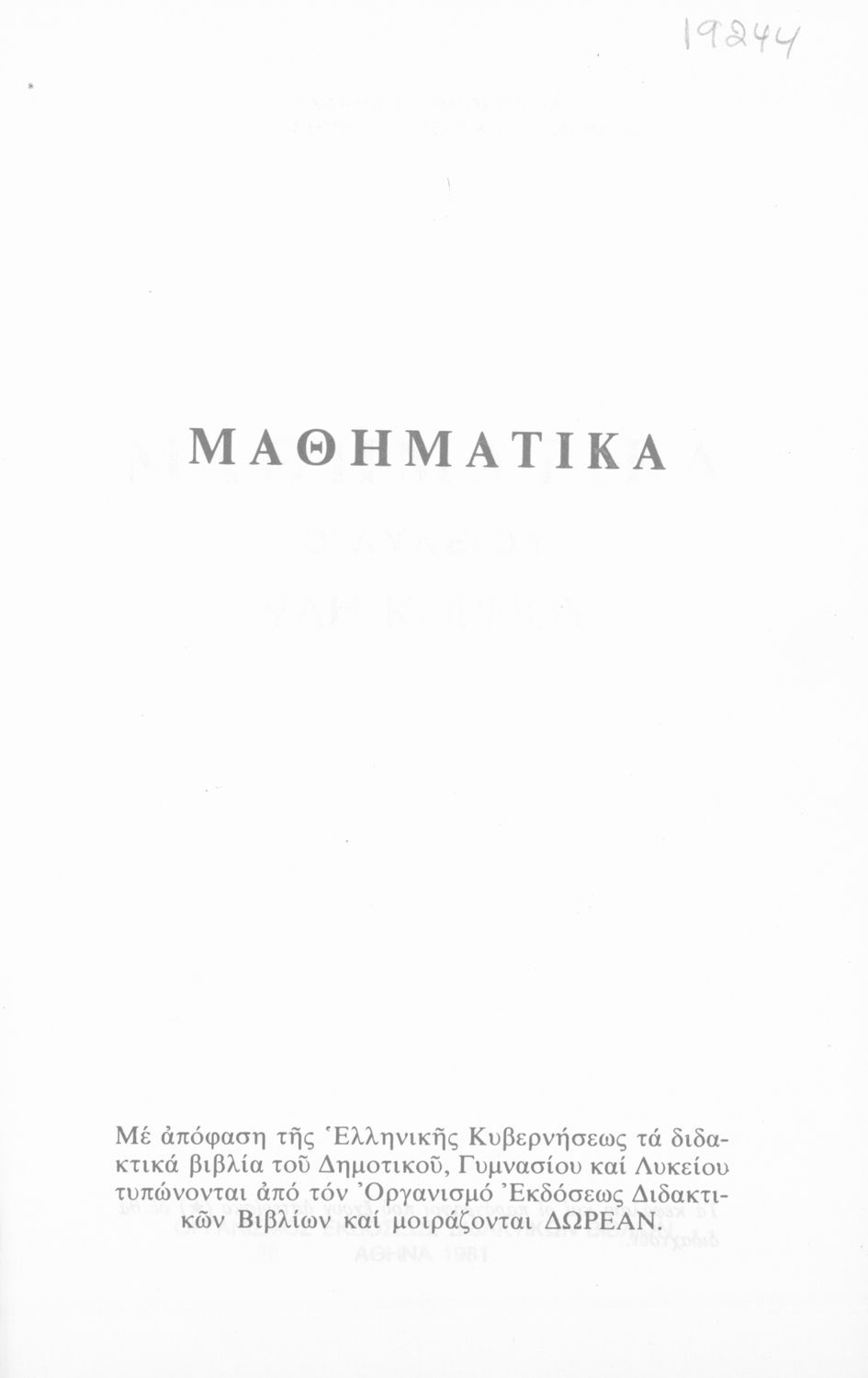 Εκδότης: Οργανισμός Εκδόσεως Διδακτικών Βιβλίων Έτος έκδοσης: 1981 Τόπος έκδοσης: Αθήνα Έκδοση: 12η Υπουργική απόφαση / Σύμβαση: 3615/18-6-1981 Έτος έγκρισης: 1981 |