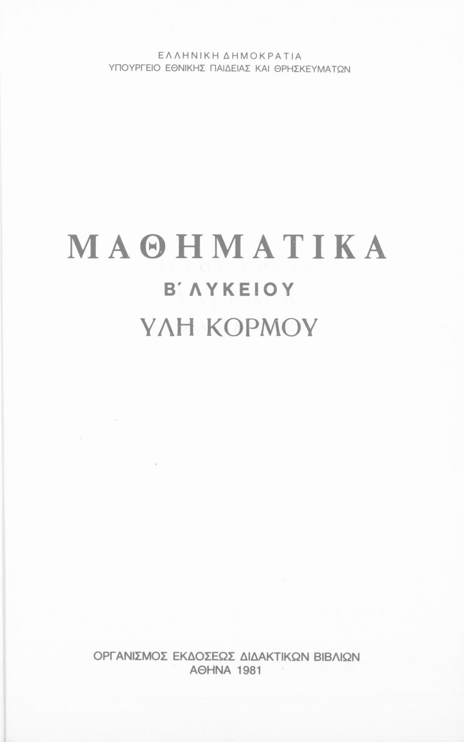 Βαθμίδα εκπαίδευσης: Δευτεροβάθμια Τάξη: Β' Λυκείου Μάθημα: Μαθηματικά Γλώσσα: Δημοτική Παρουσίαση περιεχομένου: Σχολικό εγχειρίδιο Μαθηματικών Β΄ Λυκείου χωρισμένο σε Άλγεβρα και Τριγωνομετρία. |