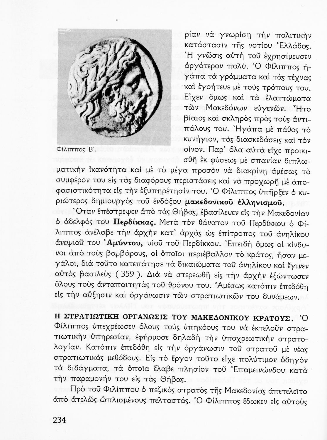 Σχολικό εγχειρίδιο Ιστορίας Α΄ Γυμνασίου που καλύπτει την περίοδο από την εμφάνιση των πρώτων πολιτισμών ως το τέλος της Μακεδονικής Ηγεμονίας. Φέρει το σύμβολο της δικτατορίας.