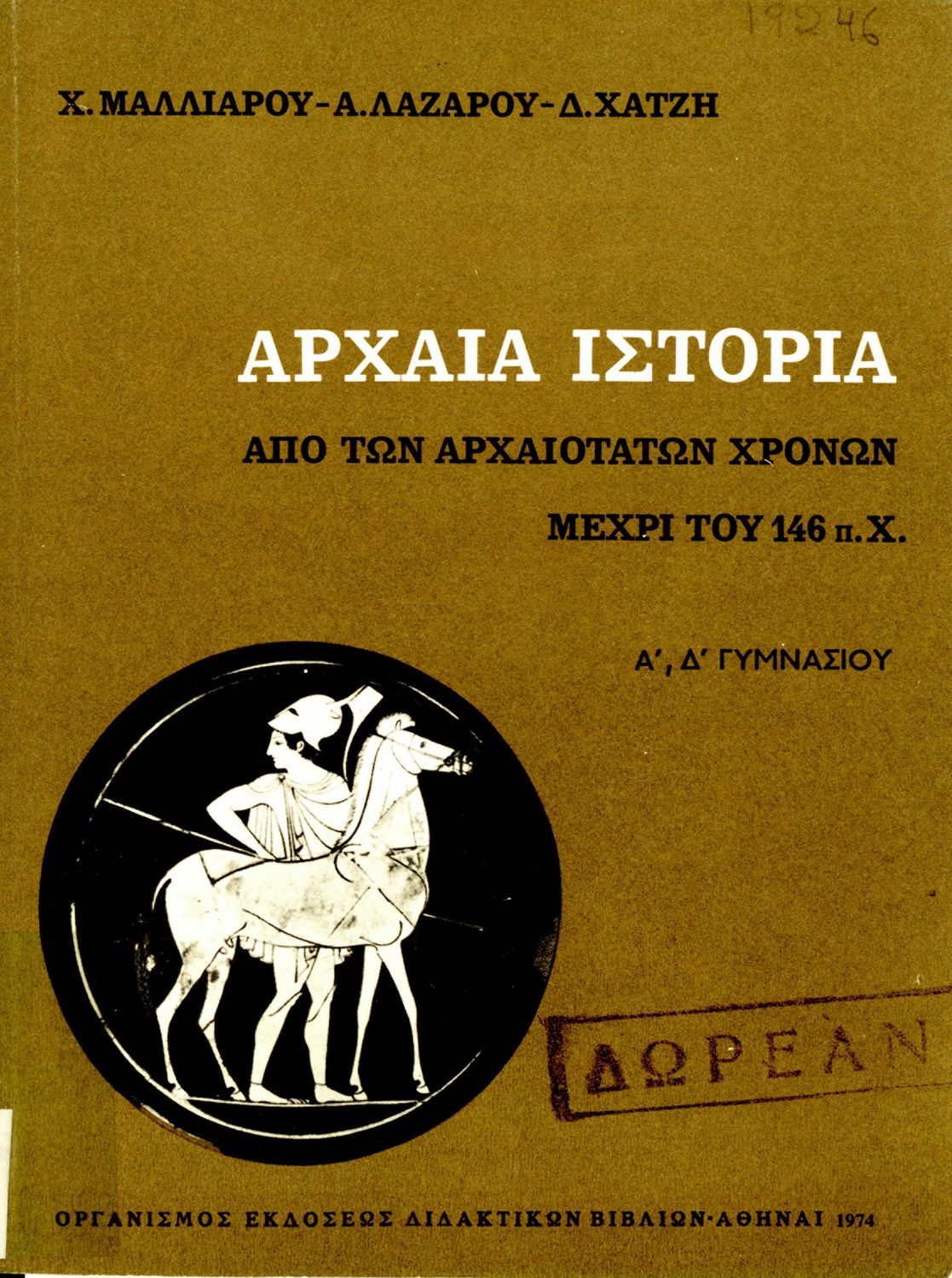 Τίτλος: Αρχαία Ιστορία από των αρχαιοτάτων χρόνων μέχρι του 146 π. Χ Α', Δ' Γυμνασίου