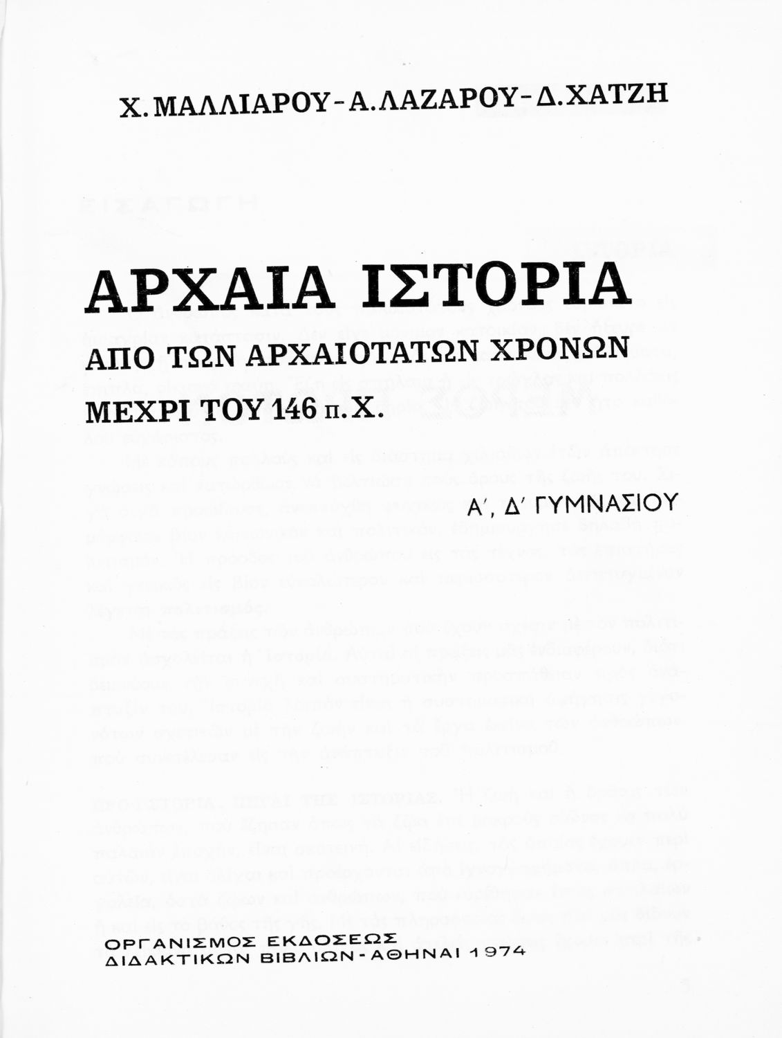 Αρχαία Ιστορία από των αρχαιοτάτων χρόνων μέχρι του 146 π. Χ Α', Δ' Γυμνασίου