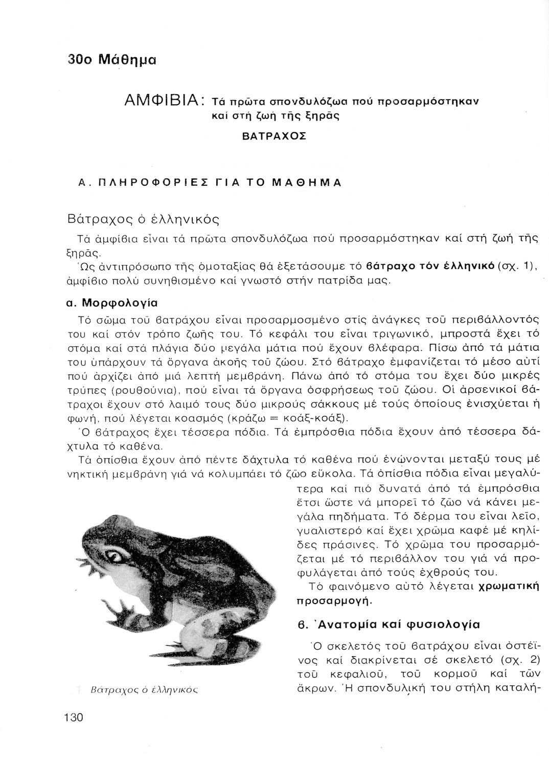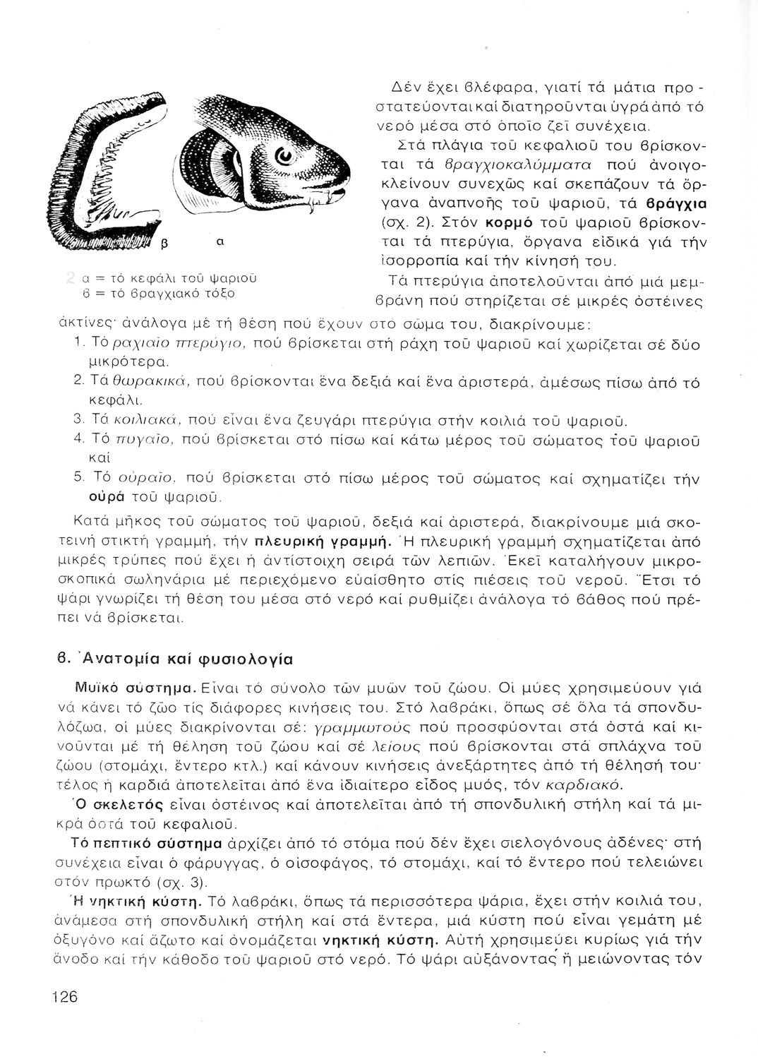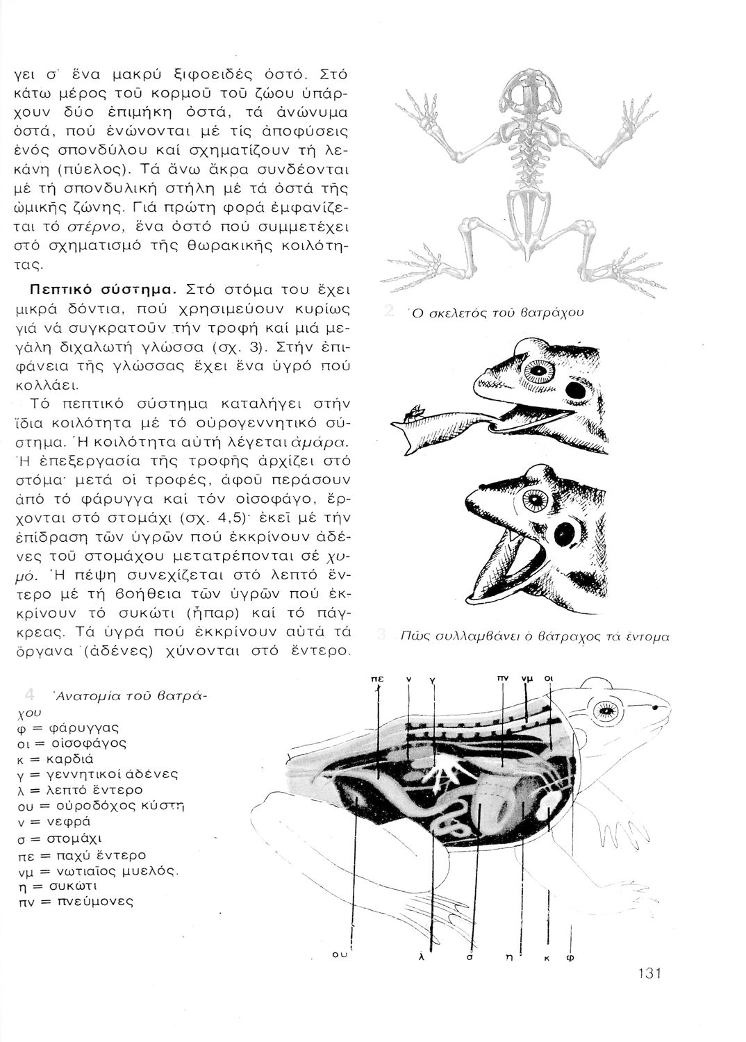 Σχολικό εγχειρίδιο Ζωολογίας Α΄ Γυμνασίου που εστιάζει στη φυσιολογία και ανατομία και παρουσιάζει τα διάφορα ζώα ανάλογα με την συνομοταξία στην οποία ανήκουν. Φέρει το σύμβολο της δικτατορίας.