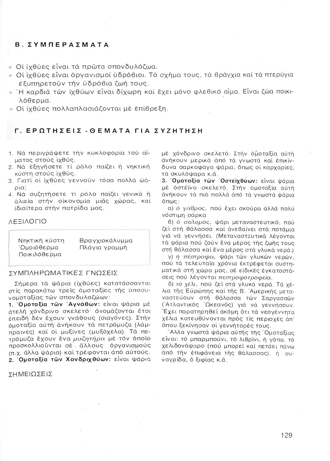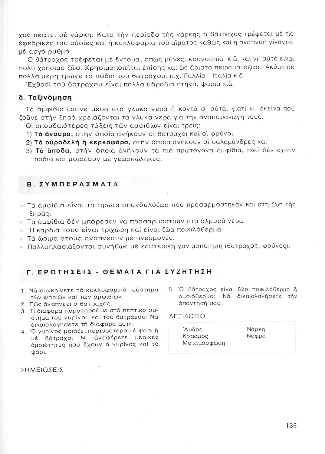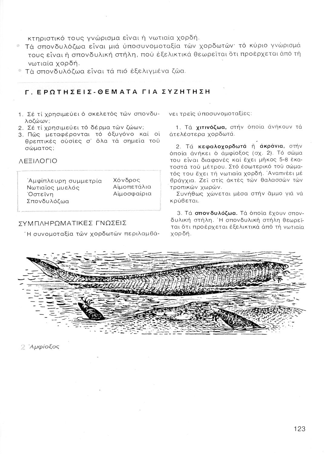 Σχολικό εγχειρίδιο Ζωολογίας Α΄ Γυμνασίου που εστιάζει στη φυσιολογία και ανατομία και παρουσιάζει τα διάφορα ζώα ανάλογα με την συνομοταξία στην οποία ανήκουν. Φέρει το σύμβολο της δικτατορίας.