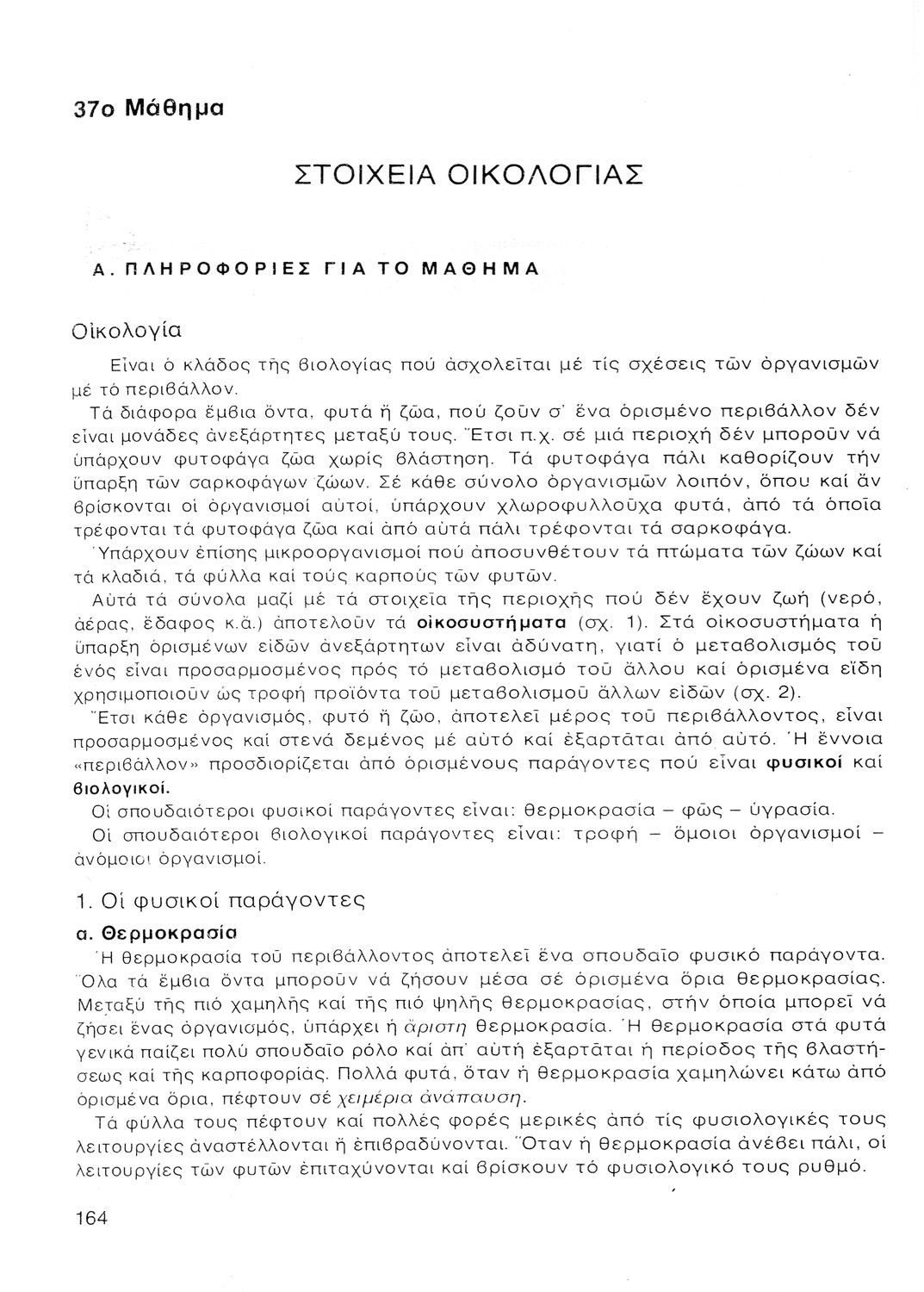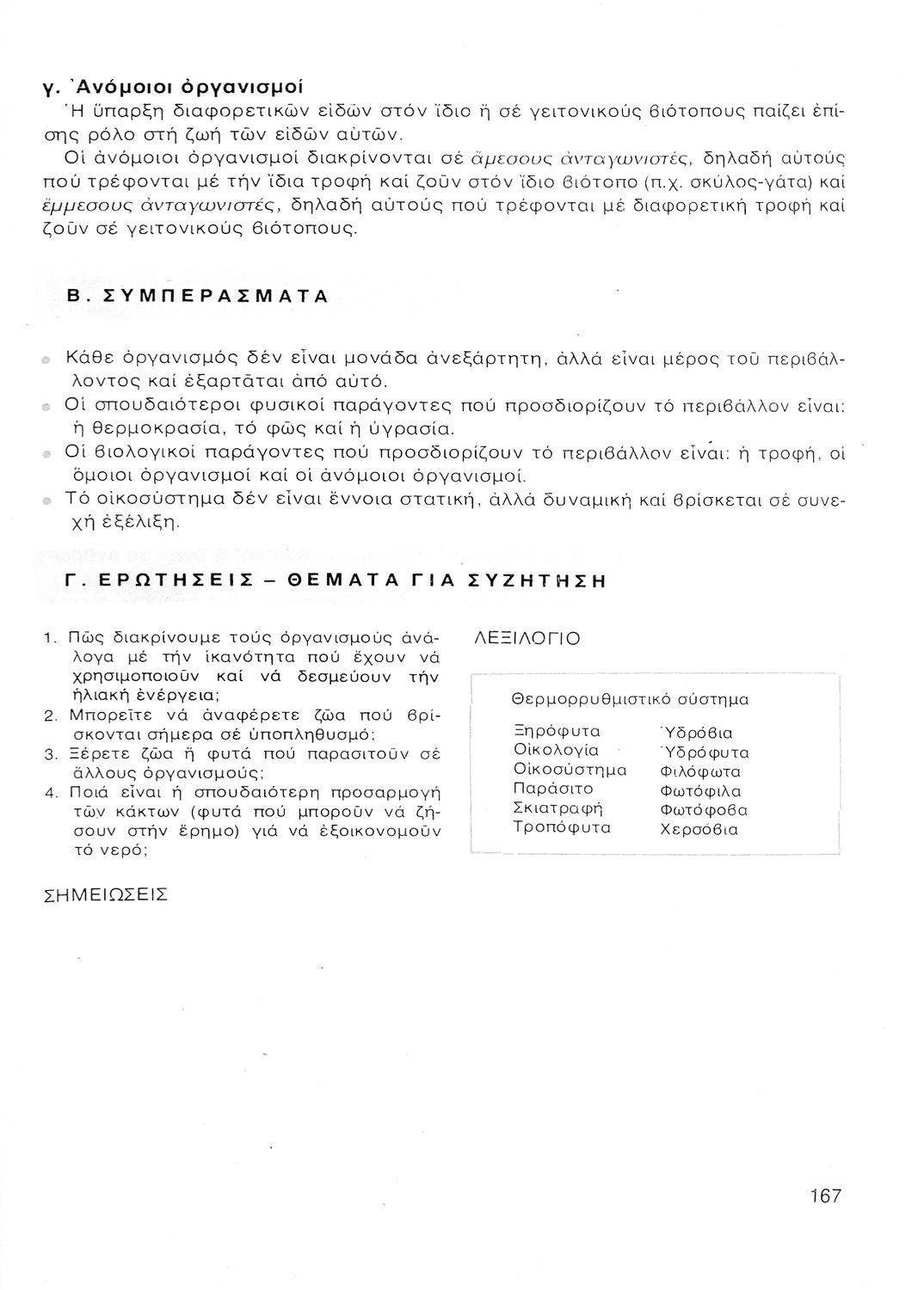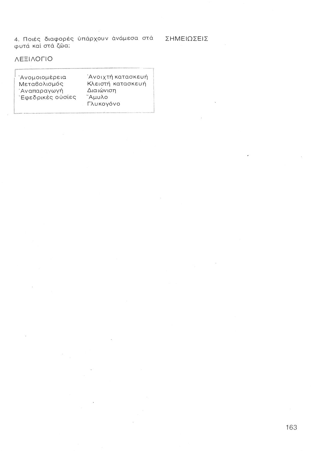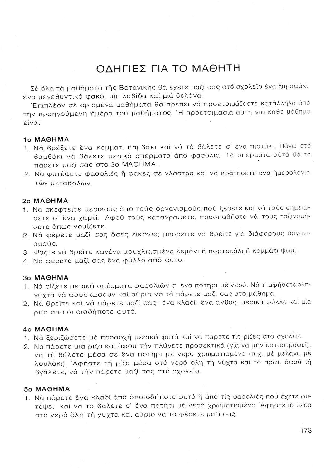 Σχολικό εγχειρίδιο Βοτανικής και Ζωολογίας Α΄ Γυμνασίου που παρουσιάζει ζώα και φυτά με βάση τα χαρακτηριστικά, τις ιδιότητες αναπαραγωγής και εξέλιξής τους καθώς και η ευρύτερη σημασία που έχουν για το οικοσύστημα.