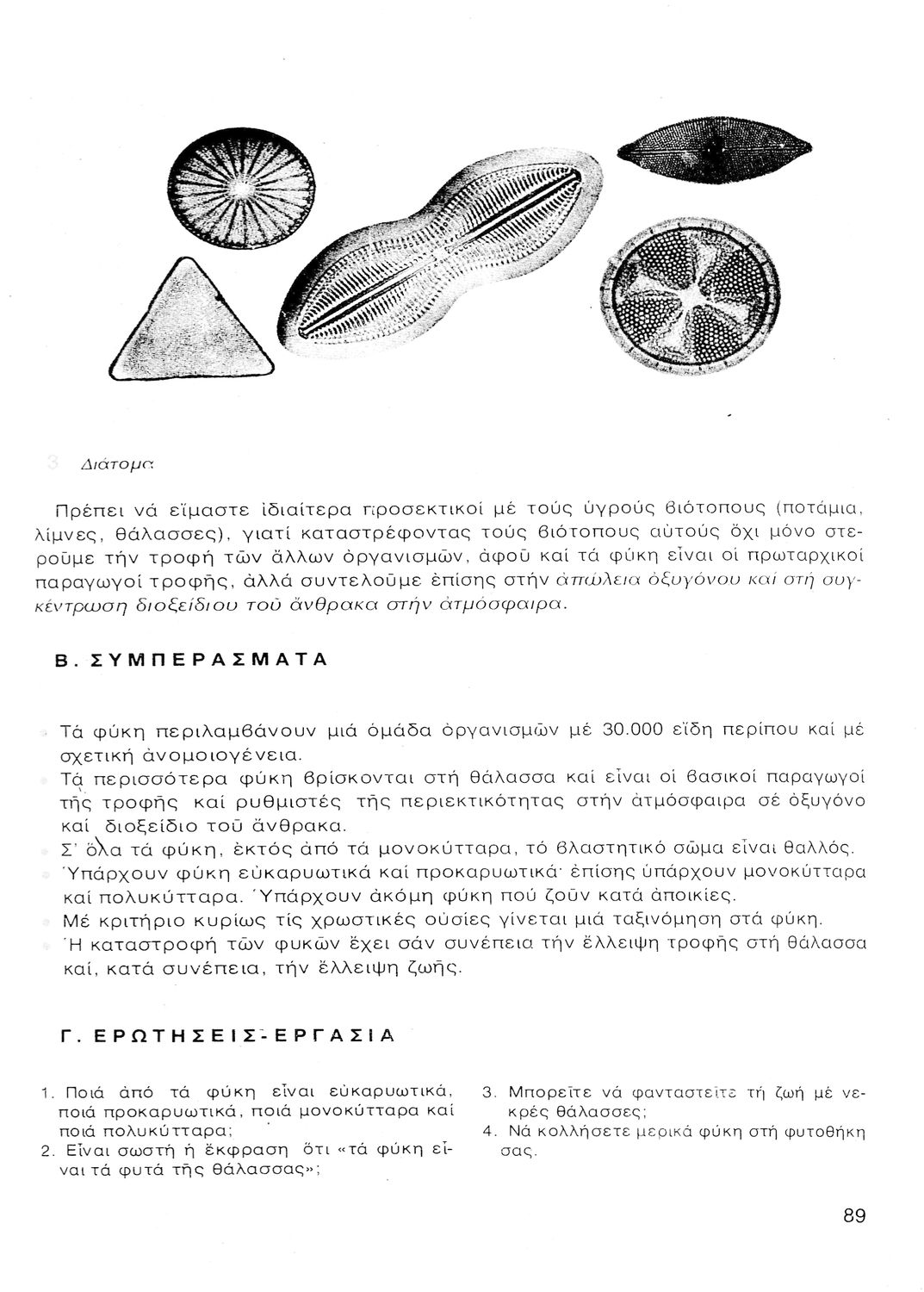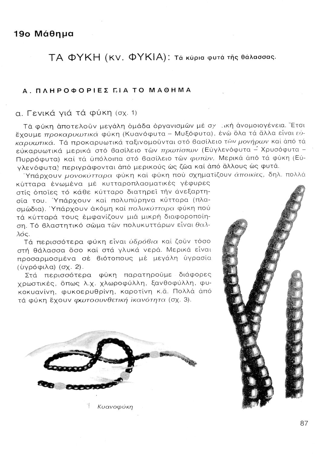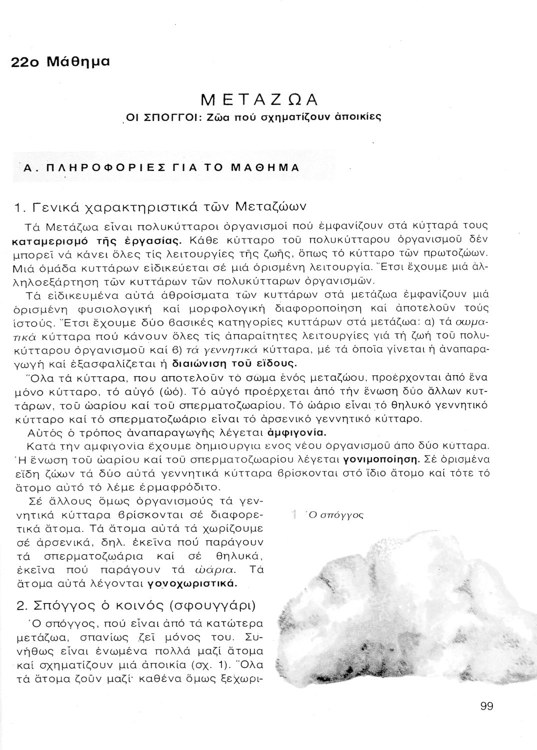 Σχολικό εγχειρίδιο Βοτανικής και Ζωολογίας Α΄ Γυμνασίου που παρουσιάζει ζώα και φυτά με βάση τα χαρακτηριστικά, τις ιδιότητες αναπαραγωγής και εξέλιξής τους καθώς και η ευρύτερη σημασία που έχουν για το οικοσύστημα.