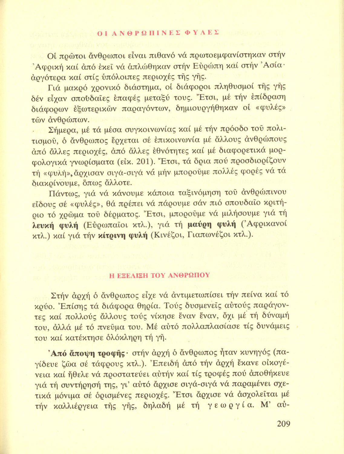 Σχολικό εγχειρίδιο Ανθρωπολογίας Β΄ Λυκείου που εστιάζει στην κατασκευή, ανάπτυξη και λειτουργία του ανθρώπινου οργανισμού και τη σχέση του ανθρώπου με το φυσικό περιβάλλον. Περιέχει και αναφορά στις ανθρώπινες φυλές.