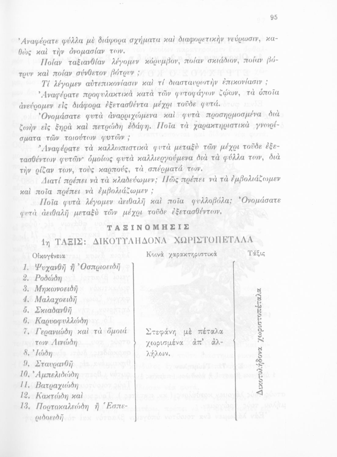 Εγχειρίδιον Φυτολογίας, Α΄ Γυμνασίου