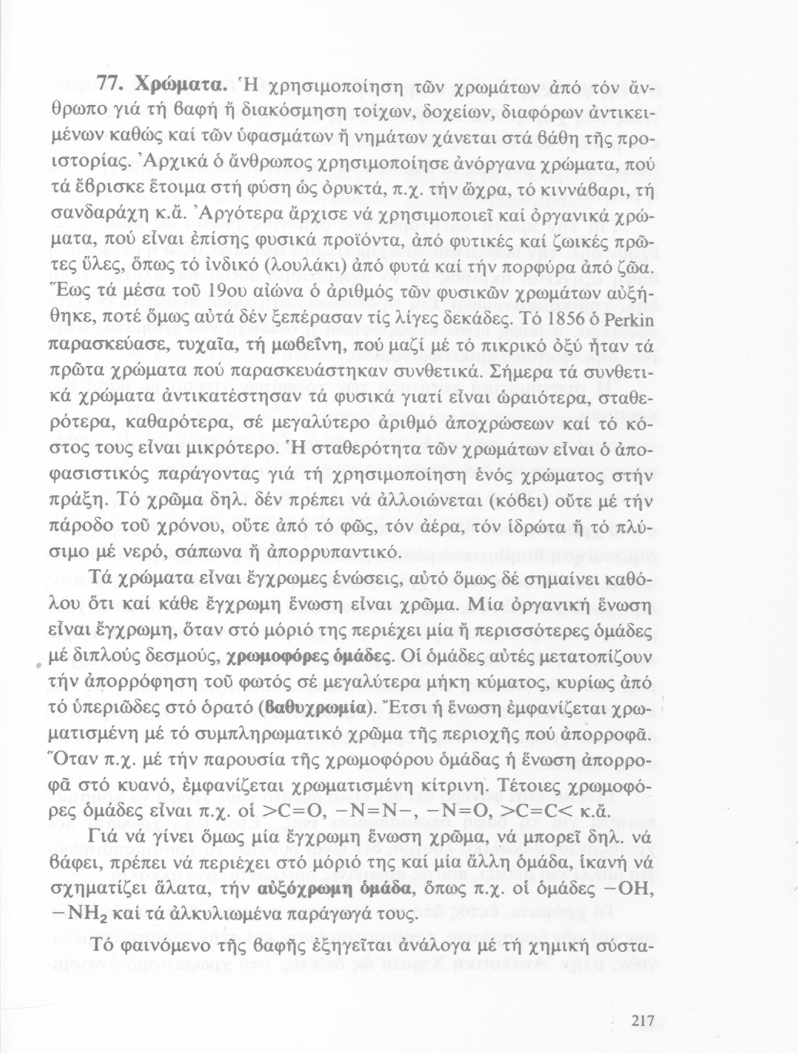 520 ## _aΣχολικό εγχειρίδιο Χημείας που προσδιορίζει βασικές έννοιες οργανικής χημείας (οργανικές ενώσεις, χημική ανάλυση, ονοματολογία και συμβολισμοί) καθώς γίνεται αναλυτική περιγραφή των ιδιοτήτων και των ενώσεων αμετάλλων, οξέων, αρωματικών υδρογονανθράκων.