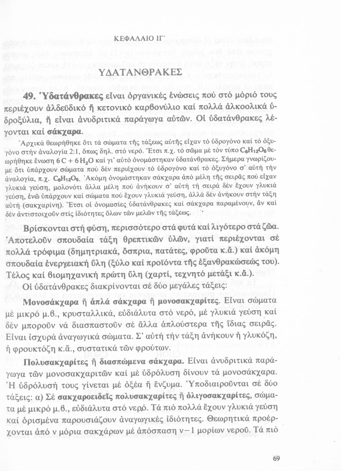Σχολικό εγχειρίδιο Χημείας Γ΄ Γυμνασίου που περιέχει εισαγωγή στην οργανική χημεία και εστιάζει στους υδρογονάνθρακες, τα σάκχαρα και τα λιπαρά σώματα.