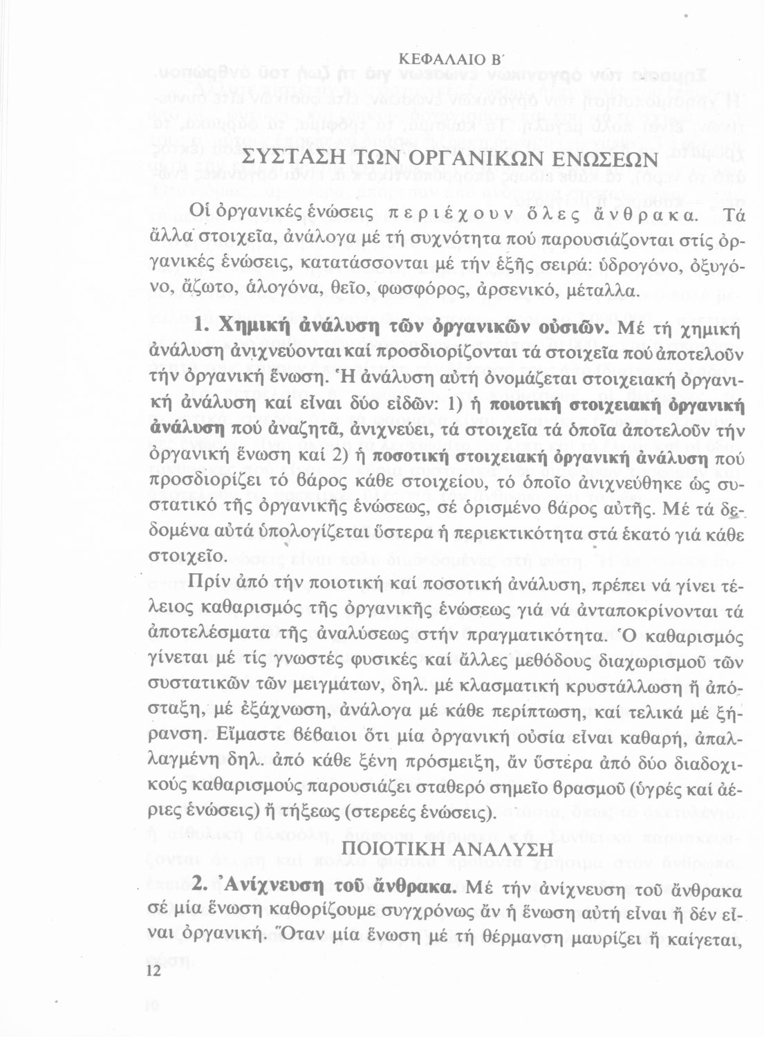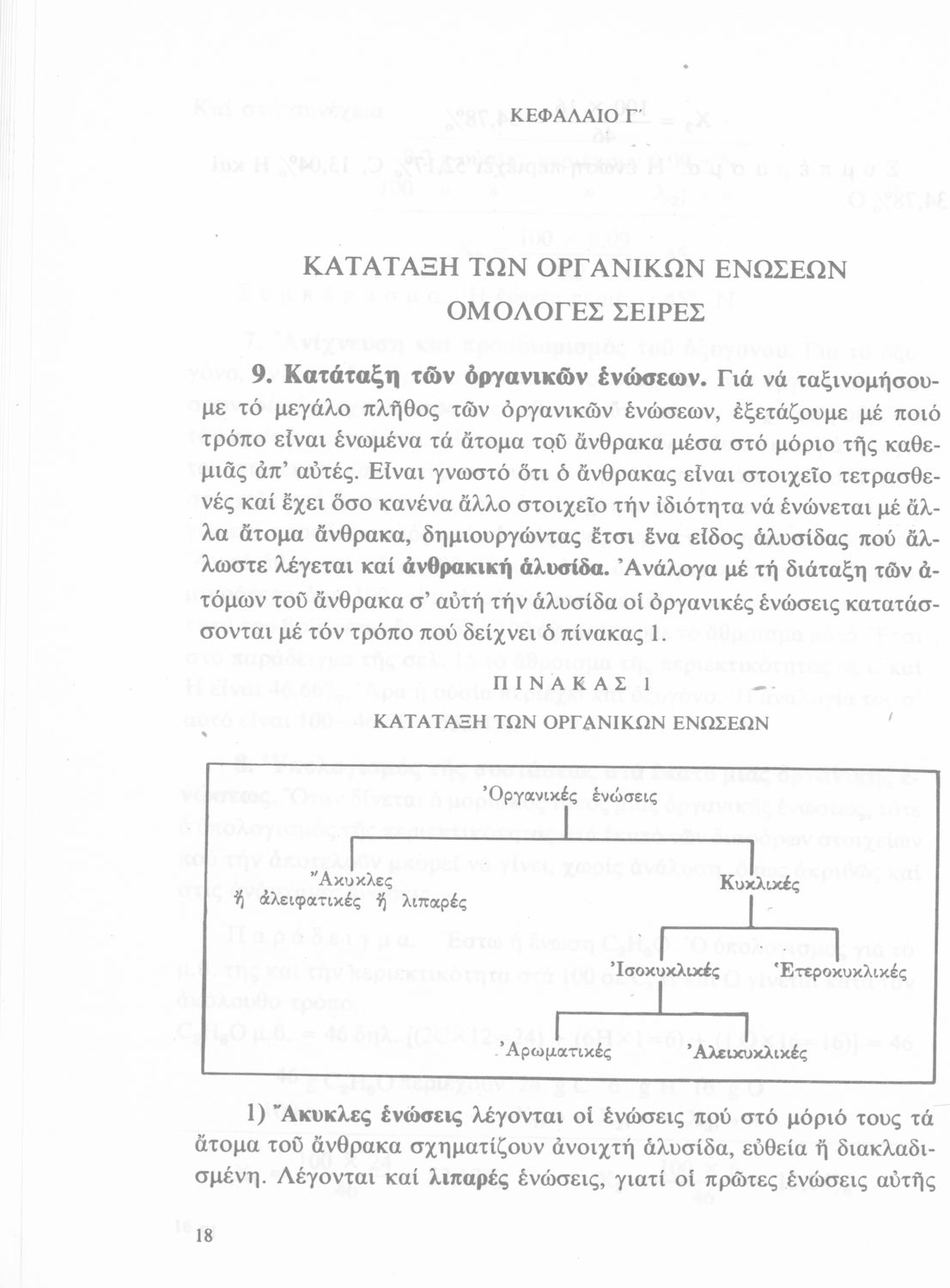 Παρουσίαση περιεχομένου: Σχολικό εγχειρίδιο Χημείας που προσδιορίζει βασικές έννοιες οργανικής χημείας (οργανικές ενώσεις, χημική ανάλυση, ονοματολογία και συμβολισμοί) καθώς γίνεται αναλυτική περιγραφή των ιδιοτήτων και των ενώσεων αμετάλλων, οξέων, αρωματικών υδρογονανθράκων.