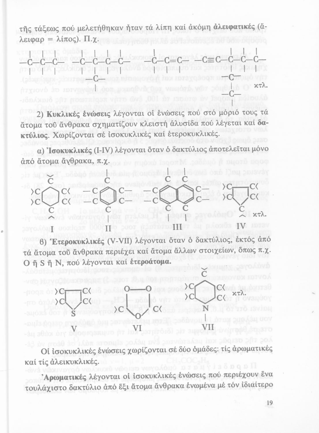 Σχολικό εγχειρίδιο Χημείας Γ΄ Γυμνασίου που περιέχει εισαγωγή στην οργανική χημεία και εστιάζει στους υδρογονάνθρακες, τα σάκχαρα και τα λιπαρά σώματα.