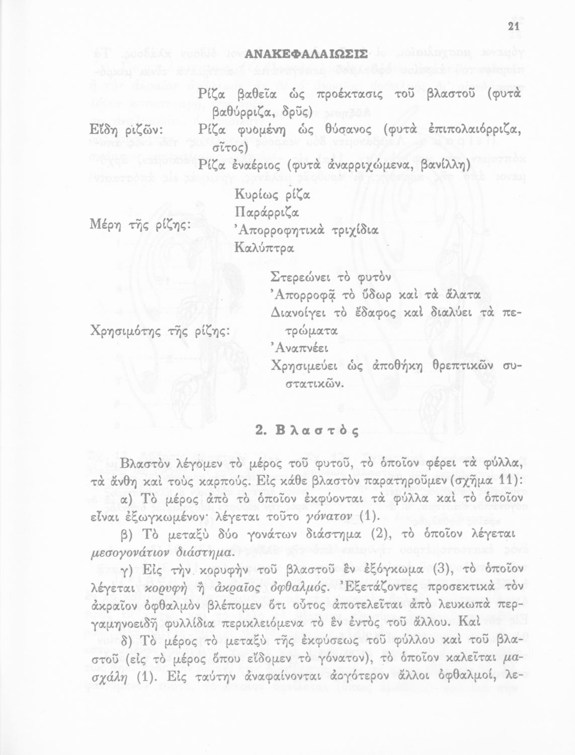 Εγχειρίδιον Φυτολογίας, Α΄ Γυμνασίου