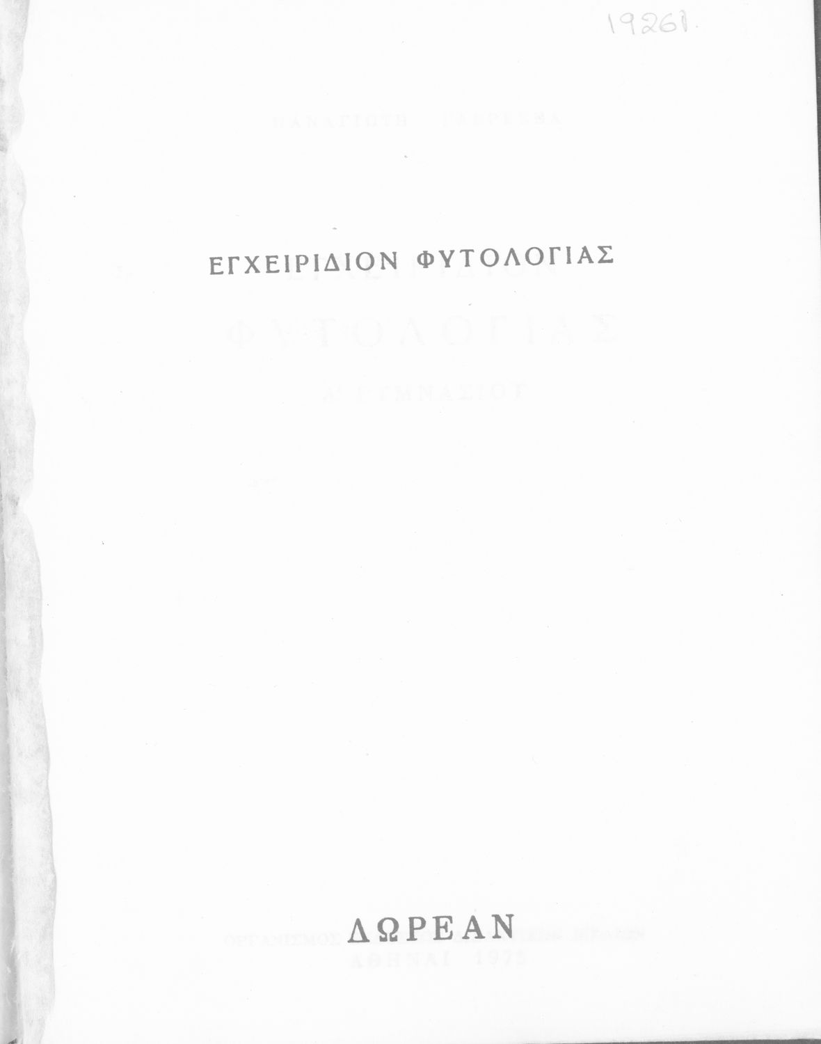 Τίτλος: Εγχειρίδιον Φυτολογίας, Α΄ Γυμνασίου