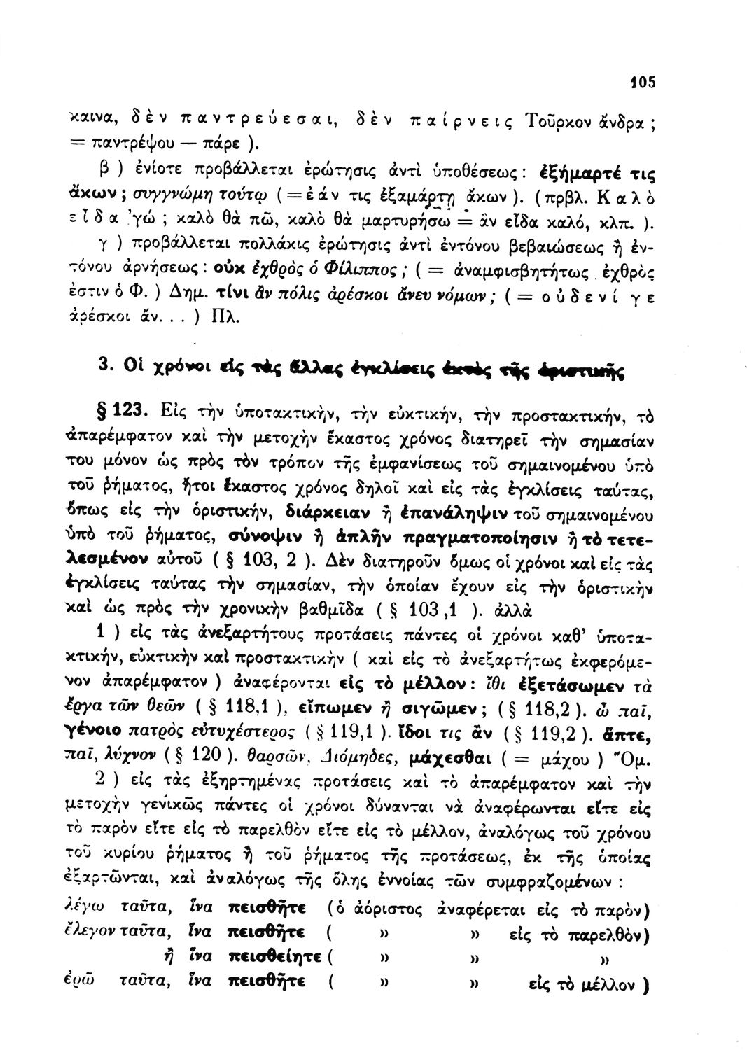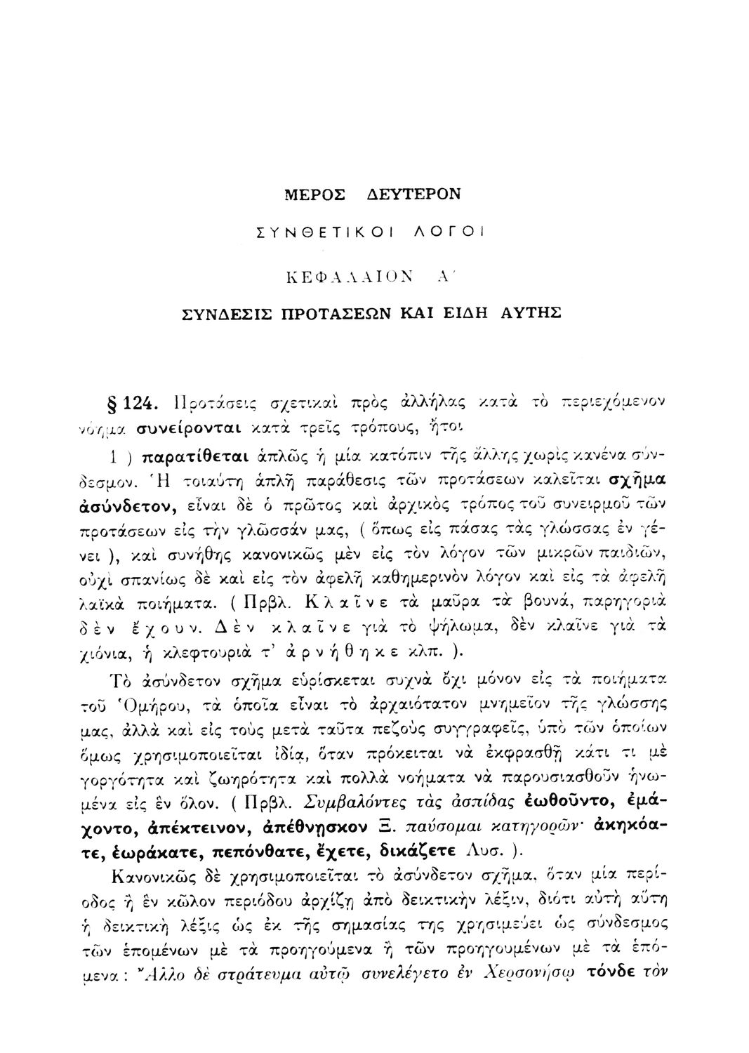 Βαθμίδα εκπαίδευσης: Δευτεροβάθμια Τάξη: Α' Λυκείου Μάθημα: Αρχαία Ελληνικά Γλώσσα: Καθαρεύουσα Παρουσίαση περιεχομένου: Σχολικό εγχειρίδιο Αρχαίων Ελληνικών Α΄ Λυκείου που εξετάζει τα μέρη του λόγου και την σύνταξή τους. |