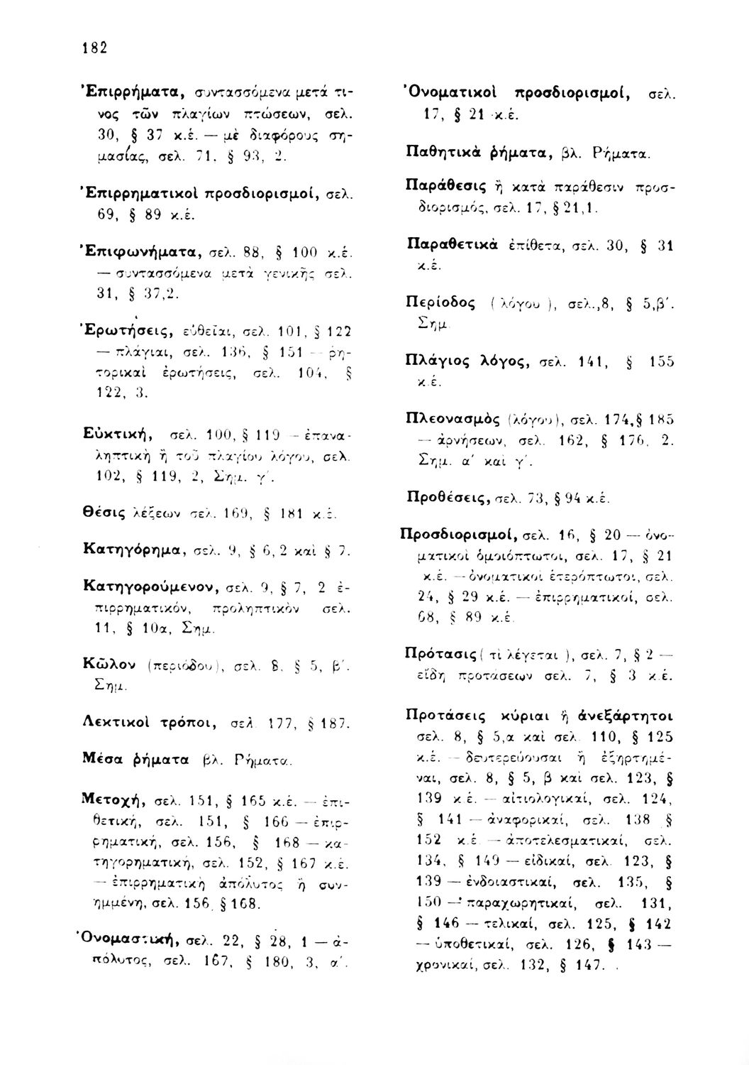 Βαθμίδα εκπαίδευσης: Δευτεροβάθμια Τάξη: Α' Λυκείου Μάθημα: Αρχαία Ελληνικά Γλώσσα: Καθαρεύουσα Παρουσίαση περιεχομένου: Σχολικό εγχειρίδιο Αρχαίων Ελληνικών Α΄ Λυκείου που εξετάζει τα μέρη του λόγου και την σύνταξή τους. |
