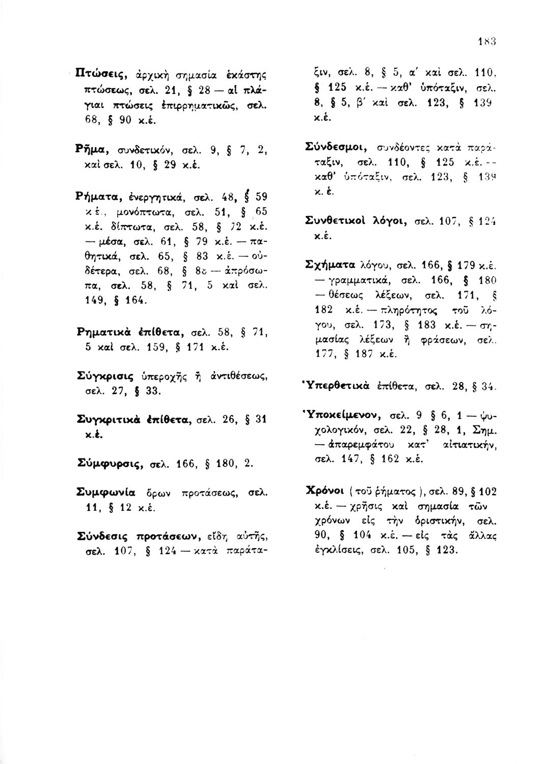 Κωδικός αναγνώρισης: 01-19262 Τίτλος: Συντακτικό της αρχαίας ελληνικής γλώσσας Α' Λυκείου Συγγραφέας: Αχιλλέας Τζάρτζανος Μέγεθος και υπόστρωμα: Σχολικό εγχειρίδιο, 21εκ., μαλακό εξώφυλλο, 183 σελίδες. |