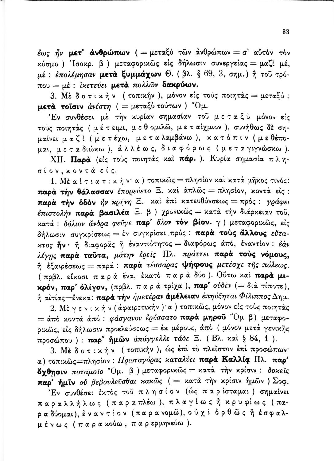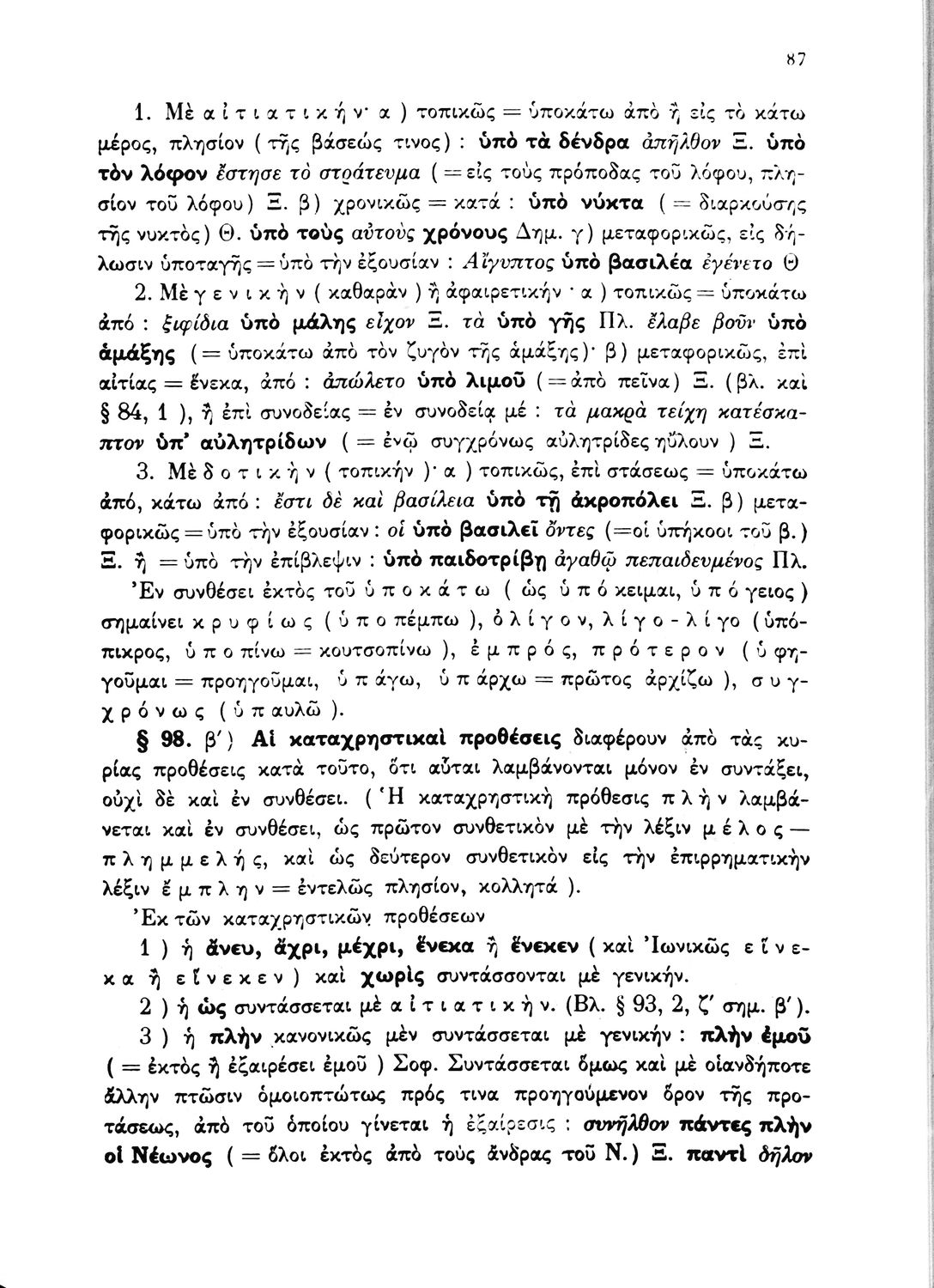 Σχολικό εγχειρίδιο Αρχαίων Ελληνικών Γ΄ Γυμνασίου και Α΄ Λυκείου που εξετάζει τα μέρη του λόγου και την σύνταξή τους.