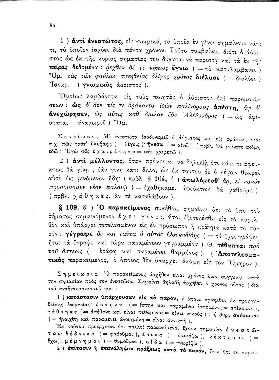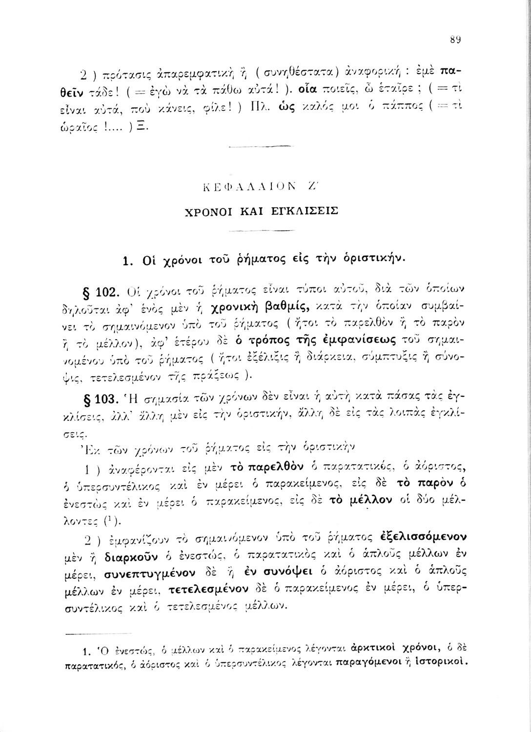 Σχολικό εγχειρίδιο Αρχαίων Ελληνικών Α', Β', Γ' και Δ' Γυμνασίου που περιέχει τους κανόνες γραμματικής και είναι χωρισμένο σε φθογγολογικό, τυπολογικό και ετυμολογικό μέρος. Περιέχει και κατάλογο ανωμάλων ...
