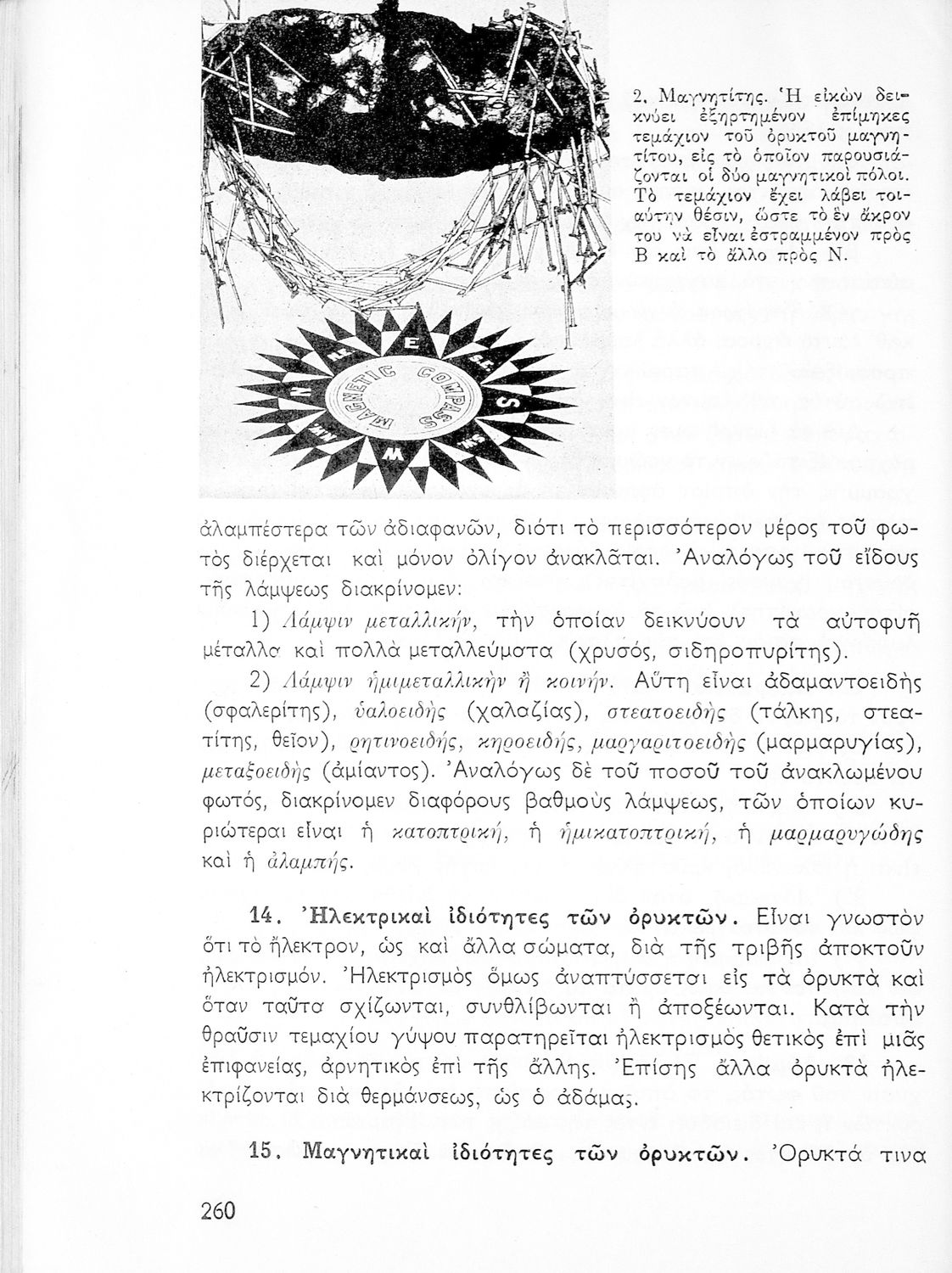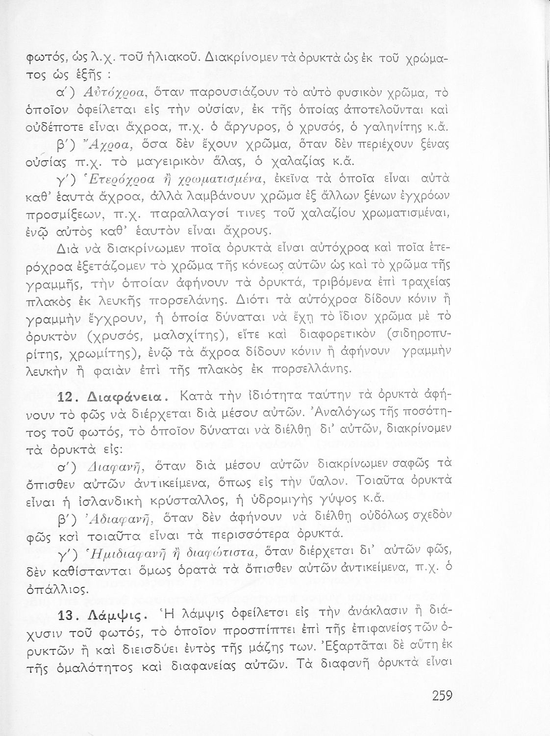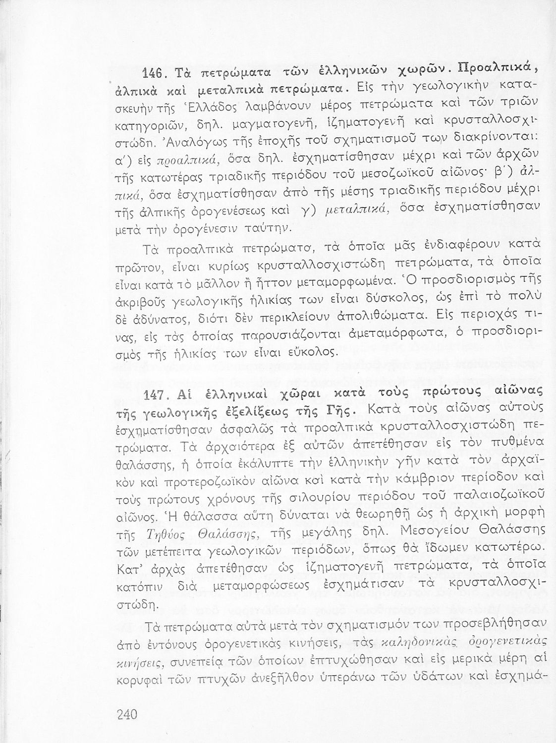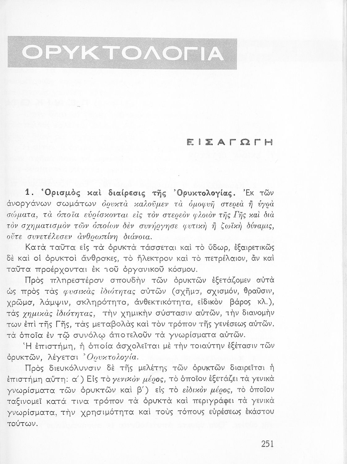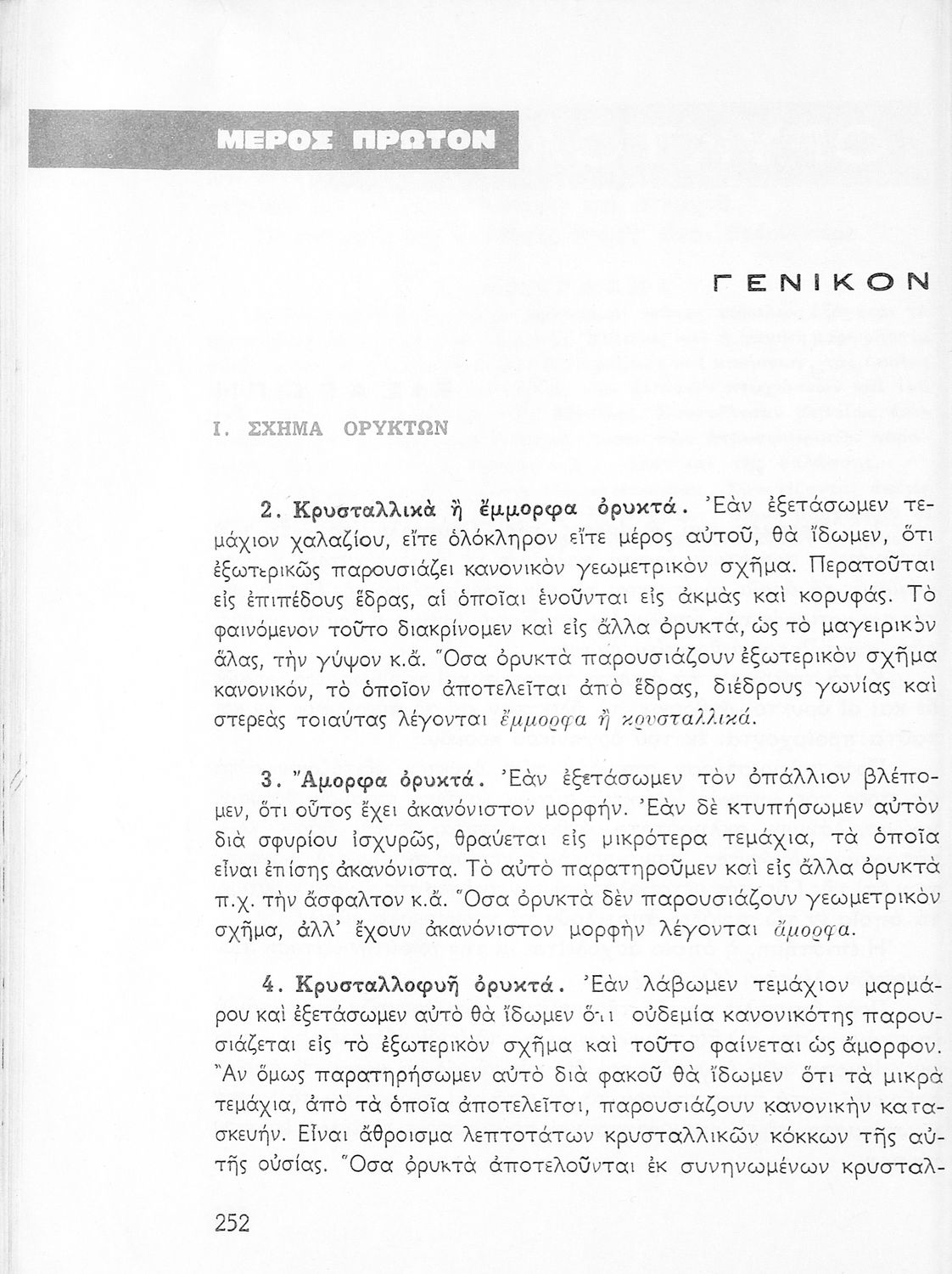 Βαθμίδα εκπαίδευσης: Δευτεροβάθμια Τάξη: Α' Λυκείου Μάθημα: Γεωλογία, Ορυκτολογία Γλώσσα: Απλή καθαρεύουσα Παρουσίαση περιεχομένου: Σχολικό εγχειρίδιο Γεωλογίας/Ορυκτολογίας για την Α΄ Λυκείου που περιλαμβάνει χθονογραφική, δυναμική και ιστορική γεωλογία, και γενική και ειδική ορυκτολογία. Ο συγγραφέας ήταν καθηγητής πανεπιστημίου και η συγγραφέας φυσικός. |